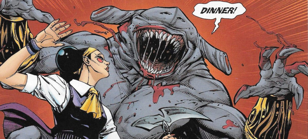 Va bene, ammettiamolo: gran parte dell’entusiasmo nato attorno al trailer di James Gunn è giustificato dalla comparsa di King Shark. Il personaggio compare per la prima volta nel 1994 su Superboy numero 4, e da allora ha dato parecchio filo da torcere al giovane supereroe e all’agente speciale dell’FBI residente alle Hawaii Sam Makoa. Le sue origini sono state a lungo dibattute: chi sosteneva fosse il prodotto di una mutazione generica, chi gli dava origini divine. Difatti la questione sarà chiarita in Aquaman: Sword of Atlantis, in cui si affermerà che, sì, è proprio il figlio del Dio Squalo. In alcune versioni è più loquace ed “evoluto”, in altre più feroce e animalesco, e entra a far parte della Suicide Squad (fumetto) nel corso del The New 52. Nel film di James Gunn avrà la voce di niente di meno di Sylvester Stallone.