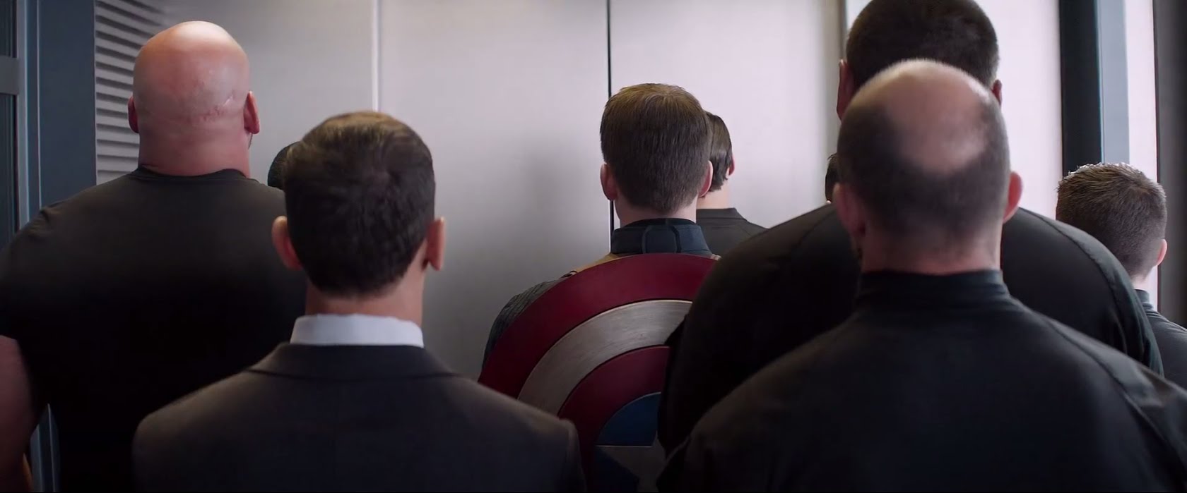 Tendenzialmente viene mostrata una scena inutile, come il personaggio che si lava le mani in bagno, e da lì sarà questione di attimi. L’ascensore è un altro grande classico di questo tipo di cliché, e un film come Captain America: The Winter Soldier ne è consapevolmente l’emblema.