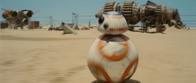 Come avrete notato c’è un robottino dal nuovo design. Si tratta di un piccolo drone con una testa simil-R2D2 e con un sistema di movimento sferico. Na palla che si muove da sola in pratica. Seppur si veda poco ci sembra logico che la tecnologia si sia in qualche modo evoluta. Eppure in background a questa scena vediamo quelli che sembrano dei rottami con dei pezzi che, almeno all’apparenza, ricordano i propulsori degli “sgusci”, come quelli che guidava un giovane Anakin dai capelli a paggetto. Questa informazione è interessante per almeno 3 motivi: 1) se siamo su Tatooine e sappiamo che il pianeta è, grosso modo, abbastanza abitato, in che zona del pianeta siamo? L’area pare infatti molto spoglia pertanto di certo non siamo nei pressi del grosso dei centri abitati. 2) Possibile che si tratti di una specie di rimessa o magari di una discarica di rottami? 3) poiché si parla di una certa “famosa” spada laser non è che la si troverà proprio qui?