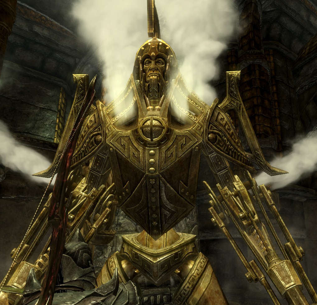 L’enorme costruzione narrativa che sta dietro a questa saga fantasy avrebbe potuto tranquillamente fornire il materiale necessario a occupare tutto l’articolo, ho deciso, però, di approfondire solamente un particolare, ovvero la storia dei Dwemer. Questo antica popolazione elfica, nati agli albori di Mundus (il piano materiale), è diretta discendente degli Aldmer, prima popolazione elfica in assoluto ad abitare Nirn, il pianeta al centro di Mundus dove è ambientata la saga. Il nome significa “popolo delle profondità”, ma sono conosciuti principalmente come nani dagli esseri umani, in quanto furono chiamati così dai Giganti che per primi gli incontrarono nella regione di Skyrim e ai quali apparirono giustamente di bassa statura. Era la civiltà più progredita dei loro tempi, essendo esperti nelle scienze, nella matematica, nella magia, nella metallurgia, nel lavoro della pietra, nell’ingegneria e nell’architettura. Qualità che si possono notare esplorando le loro enormi città sotterranee (mi riferisco a Skyrim), molto diverse dagli altri dungeon del gioco perché pieni di elementi dal sapore steampunk, come le grosse tubature per il riscaldamento, le trappole meccaniche e soprattutto gli Automi, costrutti di loro invenzione dal fin troppo chiaro scopo bellico, animati dalle Gemme dell’Anima. In queste città si trovano anche i Falmer, creature deformi e cieche, devoluzioni degli elfi delle nevi, antichi parenti dei dwemer.