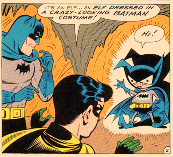 Che nel corso della cosiddetta “Silver Age” (gli anni che vanno più o meno dal ’50 al ’70) la situazione nei fumetti fosse leggermente sfuggita di mano è cosa arci-nota. Quel che la DC vorrebbe farci dimenticare è però uno dei personaggi più scemi e fondamentalmente inutili della bat-storia: Bat-Mite. Ma chi o cosa è Bat-Mite? Trattasi di una creaturina extradimensionale che, similmente a Mr. Mxyzptlk non corrisponde a un vero e proprio villain, ma solo a un orrido cagacazzi. Bat-Mite è come un ragazzino che fa scherzetti ai vicini, è in pratica il Dennis la minaccia (extradimensionale) della Bat-famiglia. Insieme a robe come Asso, il Bat-cane, rappresenta uno dei punti più tristi della storia del Pipistrello ma, a differenza di quest’ultimo, Bat-Mite è – per fortuna – fuori dalla continuity, è appare occasionalmente solo nel ciclo Elseworlds. Unico momento in cui è effettivamente apparso in una storia canonica è durante il corso di Grant Morrison: Batman R.I.P. In cui Bruce, ormai prossimo alla morte ha, tra le varie allucinazioni, anche una visione di Bat-Mite. Lì la critica dice che il personaggio sarebbe una metafora dello stato mentale alterato di Batman nell’attimo pre-morte, e blablablabla… secondo noi Morrison voleva solo levarsi uno sfizio del cazzo. E chi siamo noi per privarlo di tale sfizio?! Bella per te Grant!