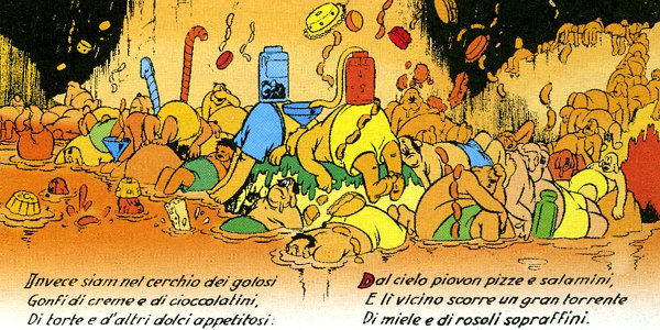 Traspare ovviamente una profonda conoscenza dell’opera dantesca, infarcita dal tocco personale di Martina, che riesce anche ad inserire alcuni riferimenti alla cultura popolare italiana di quel periodo, e dedica all’Italia, appena uscita dalla Seconda Guerra Mondiale (che lo stesso Martina aveva combattuto) il verso conclusivo Potremmo raccontarvi di alcune perle come i vari personaggi storici che incontrano, da Omero a Giulio Cesare (di nuovo, esattamente come Dante), o di Pippo cucinato e dato in pasto a Qui, Quo e Qua, o di Cucciolo che fa la telecronaca di un combattimento tra Topolino e Gambadilegno, o d tutte le parodie linguistiche del capolavoro di Dante, ma la storia meriterebbe un articolo a parte. E poi, soprattutto, vi consigliamo di reperirla e divorarla in prima persona. In fondo si tratta della storia Disney più ristampata in Italia ed una delle più apprezzate anche all’estero, nonostante le ovvie difficoltà di traduzione. Un motivo ci sarà.