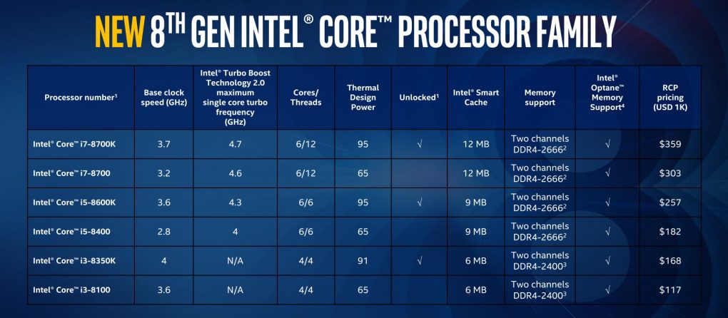 Intel ha annunciato che la famiglia di processori desktop Intel Core di ottava generazione sarà disponibile per l’acquisto a partire dal 5 ottobre 2017.