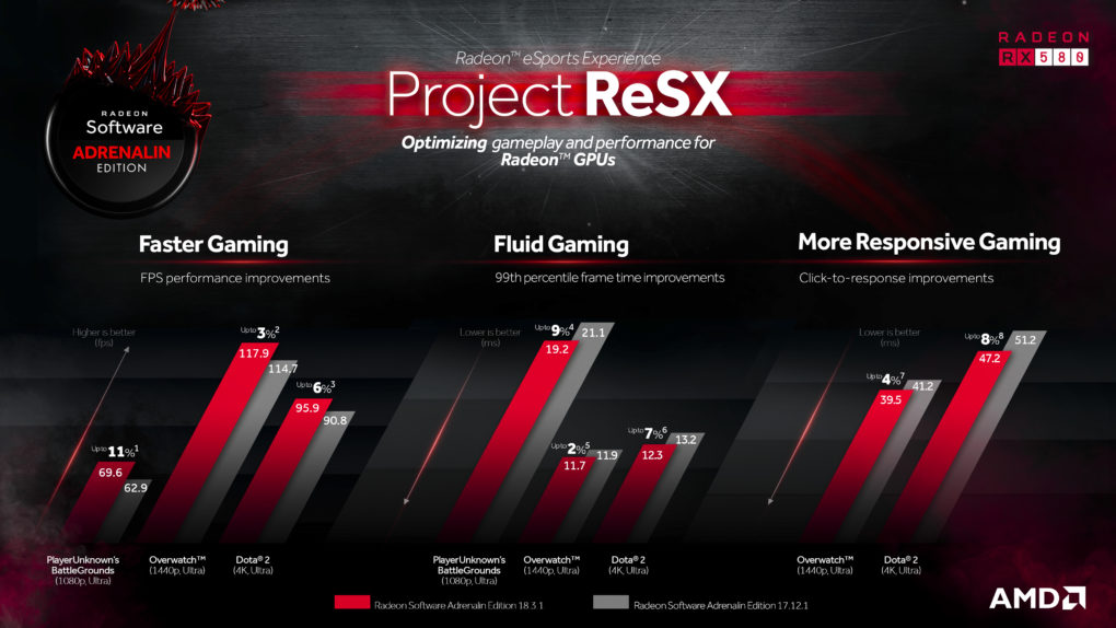 Questi miglioramenti sono dovuti a un progetto speciale all’interno del gruppo Radeon Software conosciuto come Project ReSX (Radeon eSports Experience). Negli ultimi mesi AMD ha lavorato a stretto contatto con gli sviluppatori sulle ottimizzazioni in-game, integrandole direttamente in Radeon Software, per migliorare sempre di più le prestazioni dei giochi più popolari del momento sulle GPU Radeon, garantendo così ai videogiocatori la migliore esperienza possibile.