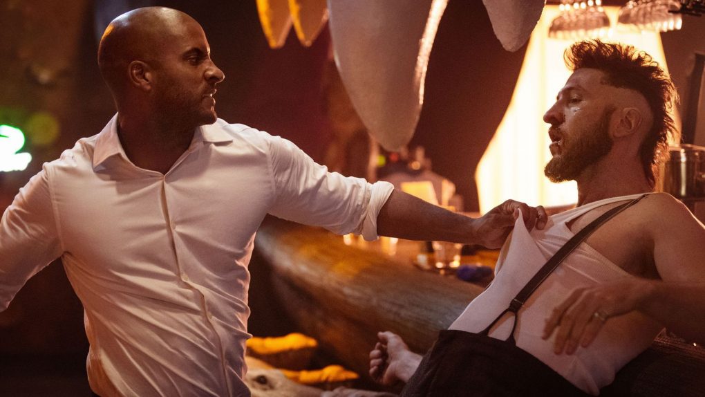 Da questo breve scambio emergono subito le caratteristiche dei due personaggi e il modo in cui gli attori si applicano ad essi. Da un lato c’è Whittle, serio e composto, quasi ingessato e poco espressivo, scelta che però ricalca bene il personaggio di Shadow così com’era nel romanzo, un uomo che non desidera essere disturbato e che per questo cerca di non farsi coinvolgere da passioni troppo accese. E, dall’altro lato, Tucker, istrionico, che mostra una gestualità e una mimica facciale splendide, perfette per il ruolo che è chiamato a interpretare.