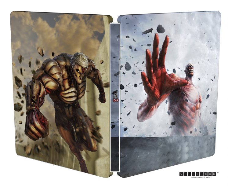 I fan che preferiscono oggetti esclusivi più tangibili, possono effettuare il pre-order della versione classica del gioco tramite i rivenditori autorizzati per ottenere una meravigliosa edizione Steelbook da collezione che presenta il temuto Colossal, Armored Titans e gli eroici membri della squadra in azione! Questa versione in edizione limitata regalerà ai fan anche dei costumi per i personaggi di Eren, Mikasa, Armin e Levi, che consentiranno loro di sostituire la loro attrezzatura di squadra con qualcosa di un po’ più casual.