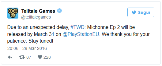 Il gioco dovrebbe uscire domani, giovedì 31 marzo, anche su PlayStation 3 e PlayStation 4. Lo ha annunciato la stessa Telltale Games con un tweet.
