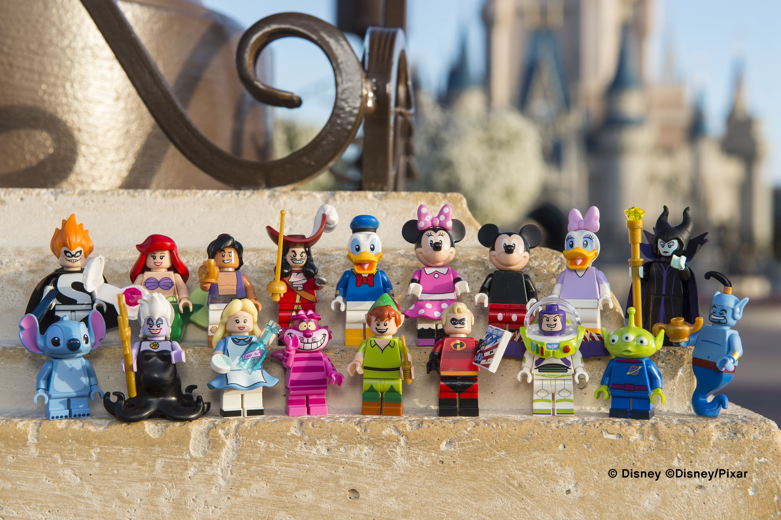 I personaggi inclusi nella serie sono Topolino, Minnie, Paperino, Paperina, Buzz Lightyear, Alieno, Mr. Incredible, Sindrome, Peter Pan, Capitan Uncino, Ariel, Ursula, Aladino, Genio, Alice, Gatto del Cheshire, Malefica e Stitch.