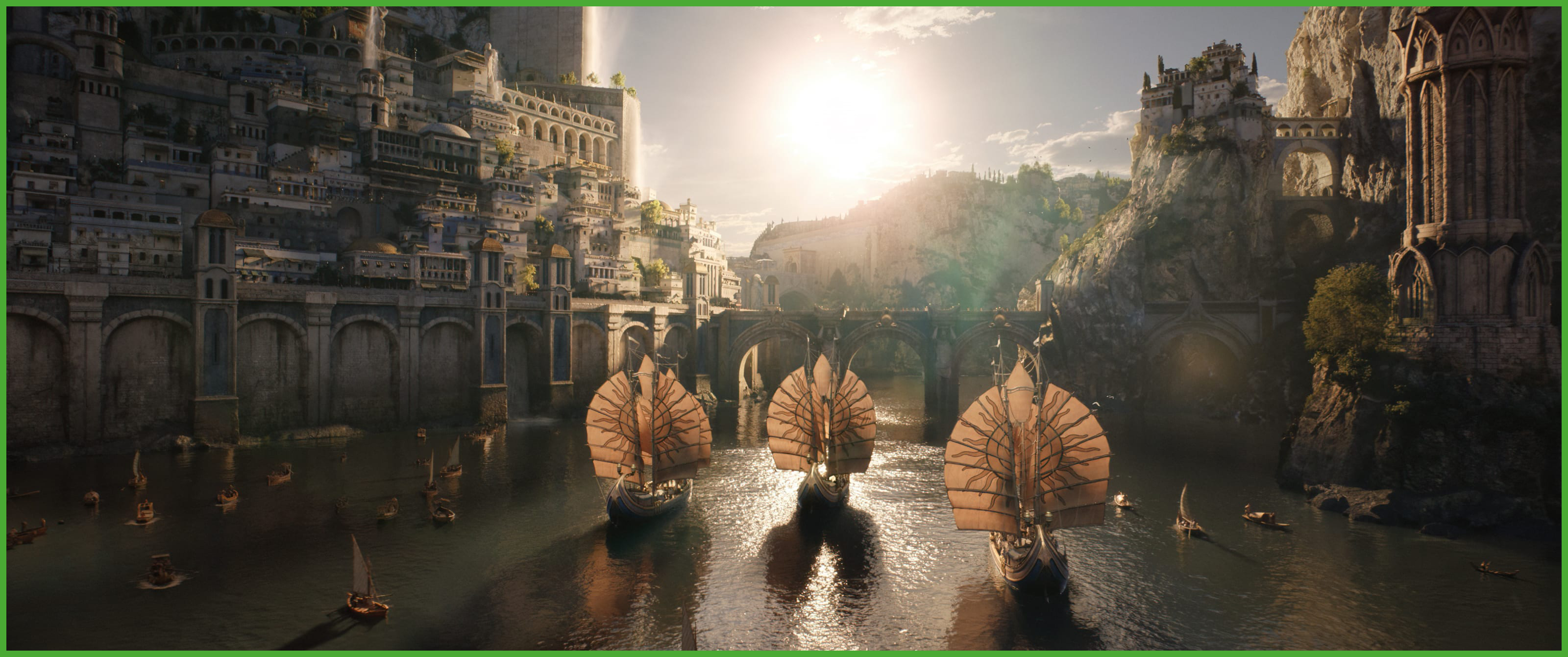 Come si legge in una lettera scritta da Tolkien al poeta W.H. Auden e riportata da Ciardi nel secondo capitolo del suo Benvenuti ad Atlantide, la decisione di inserire il mito dell’isola sprofondata nella sua produzione ha una spinta peculiare: “io ho quello che molti chiamerebbero un complesso di Atlantide. Probabilmente ereditato, benché i miei genitori siano morti troppo presto perché io venissi a sapere certe cose di loro, e troppo presto per trasmettermi con le parole queste cose. […] Sto parlando del terribile sogno ricorrente (che comincia con il ricordo stesso) della grande ondata, torreggiante e che avanza ineluttabilmente sopra gli alberi e i campi verdi”. Il modo in cui Tolkien esorcizza la grande onda è la scrittura; la sua Númenor – situata nel Grande Mare Belegaer, tra la Terra di Mezzo e il continente di Aman – è una culla della civiltà umana, un luogo in cui la cultura e la società degli Edain si nutriva di proficui scambi con quella degli Elfi della vicina Valinor. Solo l’invidia avrebbe potuto incrinare questo reciproco rapporto: gli abitanti di Númenor – già ben più longevi degli altri Uomini – iniziarono a desiderare l’immortalità, a rifiutare le lingue elfiche, a perseguitare gli amici degli elfi (e questo è il punto della storia di Númenor che abbiamo visto nella prima stagione de Gli anelli del potere).