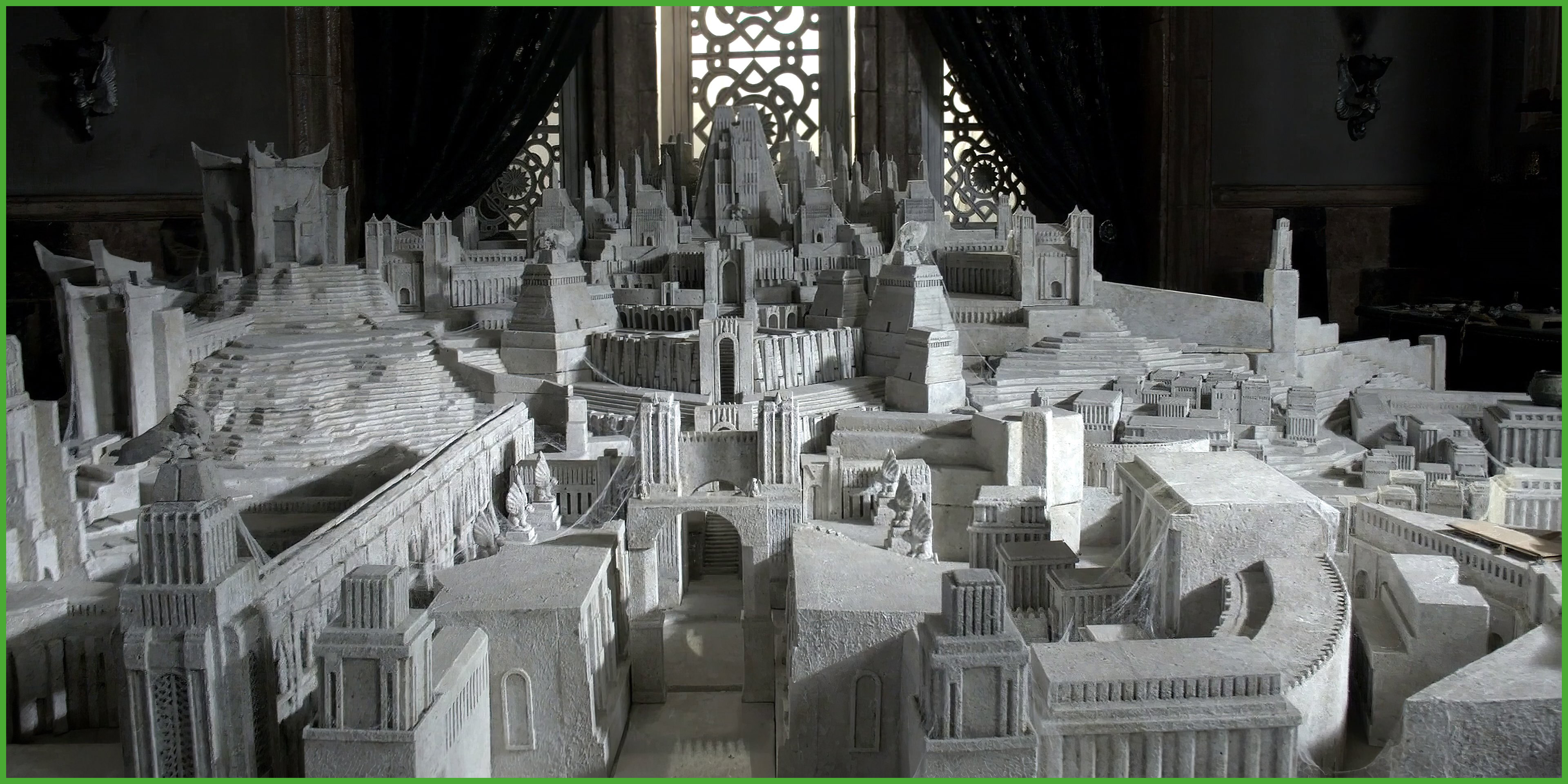 Númenor, che nella lingua degli Elfi dell’Ovest porta il nome Atalantë (da talat, tema che indica lo scivolare, il cadere giù, in quenya), trova la sua rovina nella cupidigia e nella guerra. L’ultimo re, Ar-Pharazôn, scatenò le ire dei Valar invadendo Valinor e causando la caduta di Númenor e la rimozione del continente di Aman da Arda per mano di Eru Ilúvatar. La Terra d’Occidente – questo il significato nella nostra lingua di Númenor – fu cancellata dalle mappe a causa del suo desiderio di vita eterna, di avere di più, di non riuscire ad accontentarsi di essere già i più fortunati tra gli uomini. Volendoci rifare alla tradizione biblica cara al Professore, Númenor è la cacciata dal paradiso terrestre, Sodoma e Gomorra, Babilonia e il vitello d’oro di Aronne (oltre all’immancabile e già citato diluvio universale).