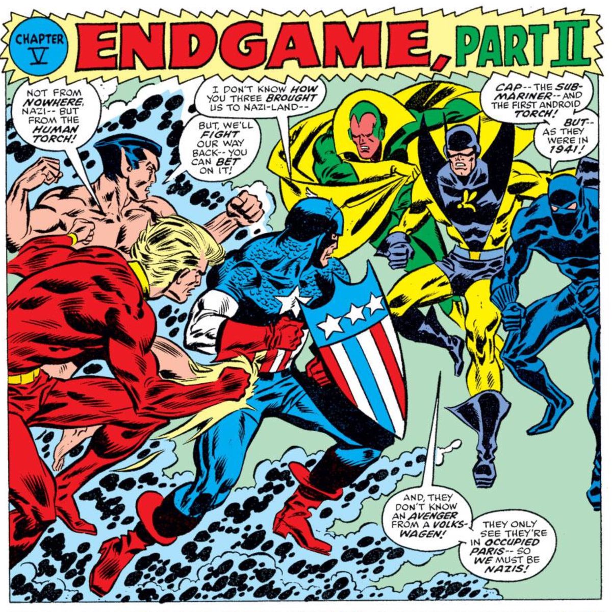Del resto, l’importanza di questa storia è rimarcata anche dal fatto che ha avuto un seguito non proprio ufficiale, nel primo Annual Issue della serie Invaders. Nel 1976 la Marvel decise di riscrivere le vicende dei suoi personaggi nella Seconda Guerra Mondiale e gli Invasori ebbero una testata tutta per loro. Un anno dopo, in un ampio speciale, fu presentato un episodio con la battaglia di Endgame narrata dal punto di vista degli Invasori. Al termine, poi, la particolarità era che, tramite una sapiente operazione di retcon, alla fine della battaglia Capitan America si chiedeva se un giorno sarebbe mai entrato a far parte degli Avengers. Che sia questo un indizio di quello che ci aspetta in Endgame? Un incontro degli eroi con le loro controparti del passato o con i loro futuri alleati?