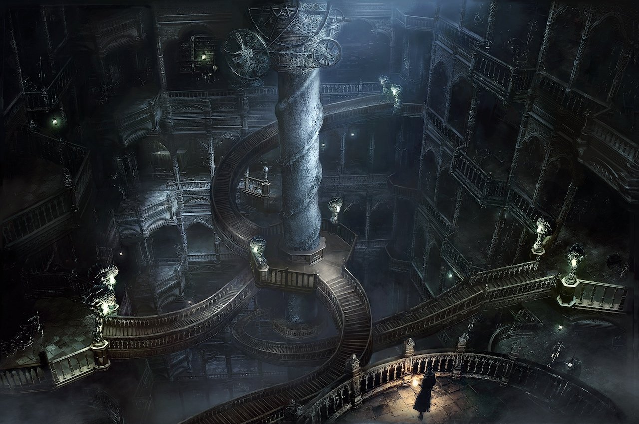 Passata questa fase, per così dire, conoscitiva The Old Hunters si apre in tutta la sua maestosità, lasciandoci scoprire nuove aree e nuovi boss, il tutto costellato da tanti, tantissimi, nuovi strumenti di morte. Le macroaree in questione sono tre, la Cattedrale dell’Incubo, seguita dal Centro Ricerche (una sorta di Clinica di Iosefka con la complessità degli Archivi del Duca) e infine il Villaggio dei Pescatori (artisticamente affascinante, ma dal level design un tantino superficiale). Detta così sembra che effettivamente le locations in questione non siano poi tante, ma considerando l’estensione di alcune aree più tutti quei piccoli anfratti nascosti e impossibili da scovare subito, la quantità di nuove aree esplorabili non è affatto risicata. Il level design poi, sempre attento a preciso, non manca di lasciarci interdetti per la sua maestosità architettonica unita ad una complessità di soluzioni ludiche, ormai tipiche della serie e che trovano in Bloodborne massima incarnazione. Seppur non brillando artisticamente, ogni locations riesce a regalarci nuove emozioni ed impegnarci proprio come alla nostra prima run. Sia chiaro, in realtà il lavoro immaginifico di Miyazaki è sempre incredibile, tuttavia venendo da una così forte connotazione artistica e richiamandone gran parte degli elementi di design, queste nuove aree non riescono a suscitare quelle emozioni avute in prima istanza con il titolo originale. Inoltre, il DLC scopre il fianco ad un’insensata svista topografica, una volta scalata per intero una Torre simile ad un grattacielo si passa poi al Villaggio dei Pescatori in cui oltre all’immancabile acqua, ci sono anche diversi baratri in cui sprofondare, la qual cosa non ci sembra affatto sensata, a maggior ragione se dall’esterno della Torre si intravede solo il cielo sconfinato. Lo so, stiamo parlando di un incubo, non deve per forza di cose essere coerente, tuttavia tutto Bloodborne è un incubo e lì le aree sono legate coerentemente le une con le altre (basti pensare a come è possibile scorgere il Castello di Cainhurst dai Boschi Proibiti).