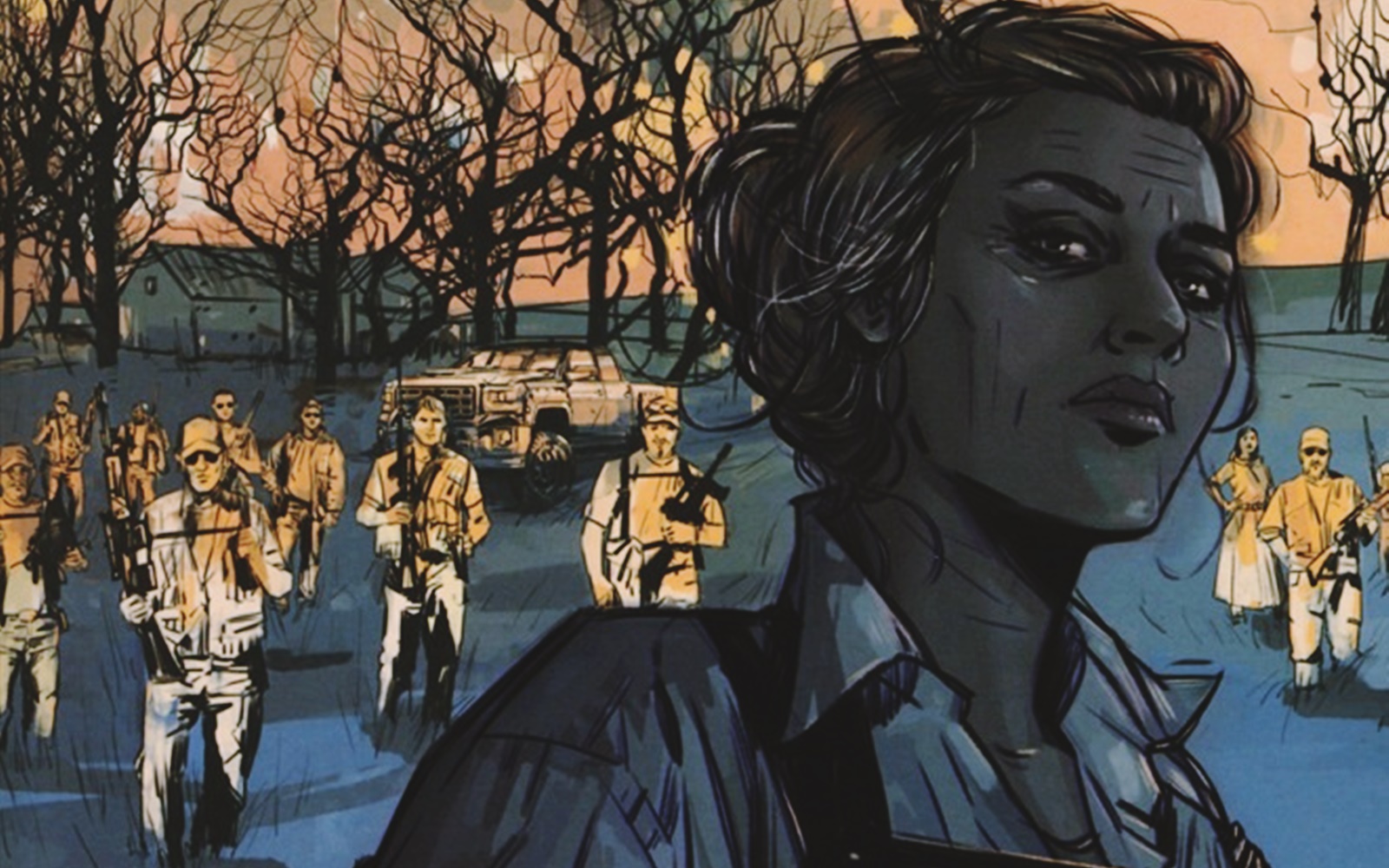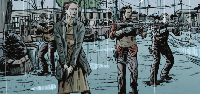 Tuttavia, va ancora oltre sul piano della scrittura e della realizzazione grafica, creando un fumetto che si muove a metà tra la carta e la serialità televisiva, tanto che la struttura delle tavole e le inquadrature somigliano a quelle di una telecamera che lega attraverso stacchi e controcampi il piano del racconto. Non a caso, ancora prima di approdare nelle edicole e nelle fumetterie oltreoceano già era stato raggiunto un accordo per una serie TV. Progetto che verrà diretto dalla AMC, la più grande case di produzione di opere tratte dai fumetti, ora come ora (tra l’altro, produttrice del fenomeno The Walking Dead). Dunque, Briggs Land si inserisce in quel filone di narrazione multimediale che negli ultimi decenni ha fatto la fortuna della Image Comics e proprio della Dark Horse, risaltando rispetto alla “concorrenza” per la contemporaneità di cui parla e per lo stile con cui la presenta. Stile che deve una buona fetta della sua potenza a Mack Chater, che, coadivuato dai colori precisi e d’atmosfera di Lee Loughridge, interpreta perfettamente il leitmotiv dell’intera storia, concentrandosi sui personaggi, sugli sguardi, sulle espressioni che escono dalla pagina e ti squadrano dentro. I suoi protagonisti incutono un timore paralizzante che si identifica con la paura della violenza nascosta, di un male vicino che ti colpisce perché sai che la realtà della trama rispecchia quello che è il mondo vero, presente. Wood e Chater mettono sotto la luce del sole le zone d’ombra della società, là dove si annidano fattori di repulsione e di disgregazione.