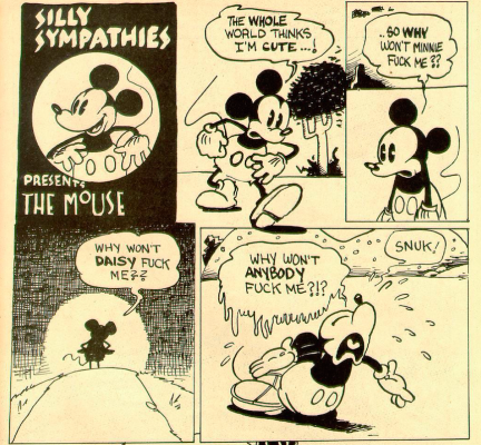 Nel 1971 un fumettista ribelle ha l’ardire di alzare la testa e portare avanti una vera e propria campagna di infezione interna dell’immagine di Topolino. Dan O’Neill fonda il collettivo Air Pirates, prendendo il nome proprio dai nemici che negli anni Trenta assillavano il famoso Topo. L’intenzione di O’Neill e della sua ciurma non era solo quella di prendersi gioco delle rigide regole sul copyright, ma anche e soprattutto di denunciare le ipocrisie e le storture del sistema di cui Topolino era rappresentante. Da bravi pirati, riescono ad arrivare fino alle vette dell’azienda, facendo trovare alcune copie del loro Air Pirates Funnies durante una riunione del consiglio direttivo. La reazione della Disney a questa manifestazione controculturale è quanto mai risoluta: O’Neill è querelato per violazione del copyright e del trademark. Inizia così una battaglia legale combattuta a colpi di matita e puntualizzazioni sul concetto di fair use. Per pagarsi le spese, gli Air Pirates vendono le tavoli originali disegnate per la Disney: una volta realizzato che O’Neill non avrebbe mai ceduto (aveva fondato nel frattempo il Mouse Liberation Front), nel 1978 la Disney tira i remi in barca, rinunciando al risarcimento monetario in cambio della promessa di chiudere con le parodie di Topolino.