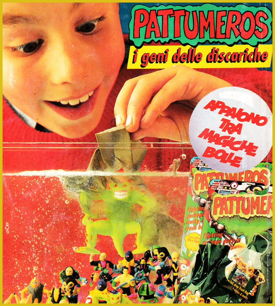 Ed eccoci arrivare alla nostra premessa di inizio articolo, ovvero che non ci si può stupire se negli anni ’90 il piccolo pubblico impazziva letteralmente per un prodotto come i Pattumeros, cioè i soliti mostri e combattenti collezionabili, che avevano tuttavia una bizzarra particolarità, come il nome peraltro suggerisce: uscivano da una sorta di piccolo sacco della spazzatura.