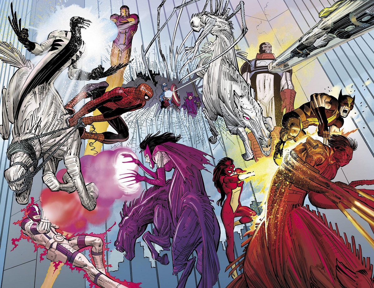 Apocalisse, tuttavia, non riuscì a controllare Hulk e questi, dopo averlo servito per poco, si strappò infine da dosso l’armatura di Guerra e semplicemente se ne andò per la sua strada. I Cavalieri, come capirete, sono una parte fondamentale dei vari cicli che hanno visto protagonista Apocalisse e nel mondo fumettistico sono sempre associati ad una certa curiosità. La scelta dei cavalieri, più o meno dalla seconda generazione in poi, ha sempre portato con sé molti segreti, tali da sconquassare lo status quo di moltissimi personaggi, spesso celebri e già ampiamente consacrati. Non si tratta ovviamente di una regola, ma il ruolo di “cavaliere” ha cambiato radicalmente la vita (e la morte) di personaggi del calibro di Angelo, Wolverine, Gambit e Sentry. Apocalisse è sempre stato molto abile nel rintracciare i personaggi migliori da inserire nel suo roster, sicché sia nella sua versione originale che nelle sue varie linee alternative (alcune delle quali esplorate durante il ciclo Exiles) Apocalisse si è attorniato di personaggi potentissimi, spesso vittime di una schiavitù imposta con annesso lavaggio del cervello, meno spesso per il semplice bisogno di sentirsi potenti. Apocalisse, grazie alla tecnologia celestiale, è infatti riuscito a modificare non solo il suo stesso corpo, ma anche il set di abilità dei suoi araldi, rendendo molti di essi ancor più potenti e letali e, quasi sempre, cambiandone anche le caratteristiche fisiche. I Cavalieri di Apocalisse, dunque, sono e contemporaneamente NON sono gli eroi che erano e sovente gli X-Men o chi per loro hanno dovuto lottare molto per far tornare alcuni di essi alla normalità anche se, salvo che in pochissimi casi, i personaggi in questione hanno portato su di sé i segni del cambiamento per moltissimi anni. Parlare di TUTTI i cavalieri richiederebbe un’intera wiki, ecco perché qui ci limitiamo a dire che le generazioni di cavalieri sono state, ad oggi, sei anche se si sospetta che nel passato ce ne siano state altre che ai lettori di fumetti non sono note. Di queste sei le più bizzarre sono state la quarta e la quinta. La quarta, ossia “I Cavalieri Finali” fu un gruppo di quattro cavalieri provenienti da diverse epoche storiche, congelati da Apocalisse per essere scongelati quando la situazione lo richiedeva. Si trattava infatti di individui unici e molto potenti, che comunque presero gli schiaffi come da copione. La Quinta fu invece veramente terribile e composta da quattro cavalieri della morte. Si trattò di Banshee, Daken, Grim Reaper e Sentry che morti recentemente furono riportati in vita per adempiere ognuno ad un compito molto preciso. La storia in sé era un casino incredibile, con addirittura una coppia di “mini Apocalisse” venuti dal futuro… i Gemelli Apocalisse, ma la sola presenza di un Sentry non morto dovrebbe di per sé preoccupare il mondo… e non poco. Tra gli altri militanti celebri delle altre incarnazioni, ed esclusi quelli già citati, ci sono stati anche Sole Ardente, Polaris, Psylock nonché versioni alternative di personaggi noti come Sinistro, Thunderbird, L’Uomo Ghiaccio e un frappo di altri x-tizi.