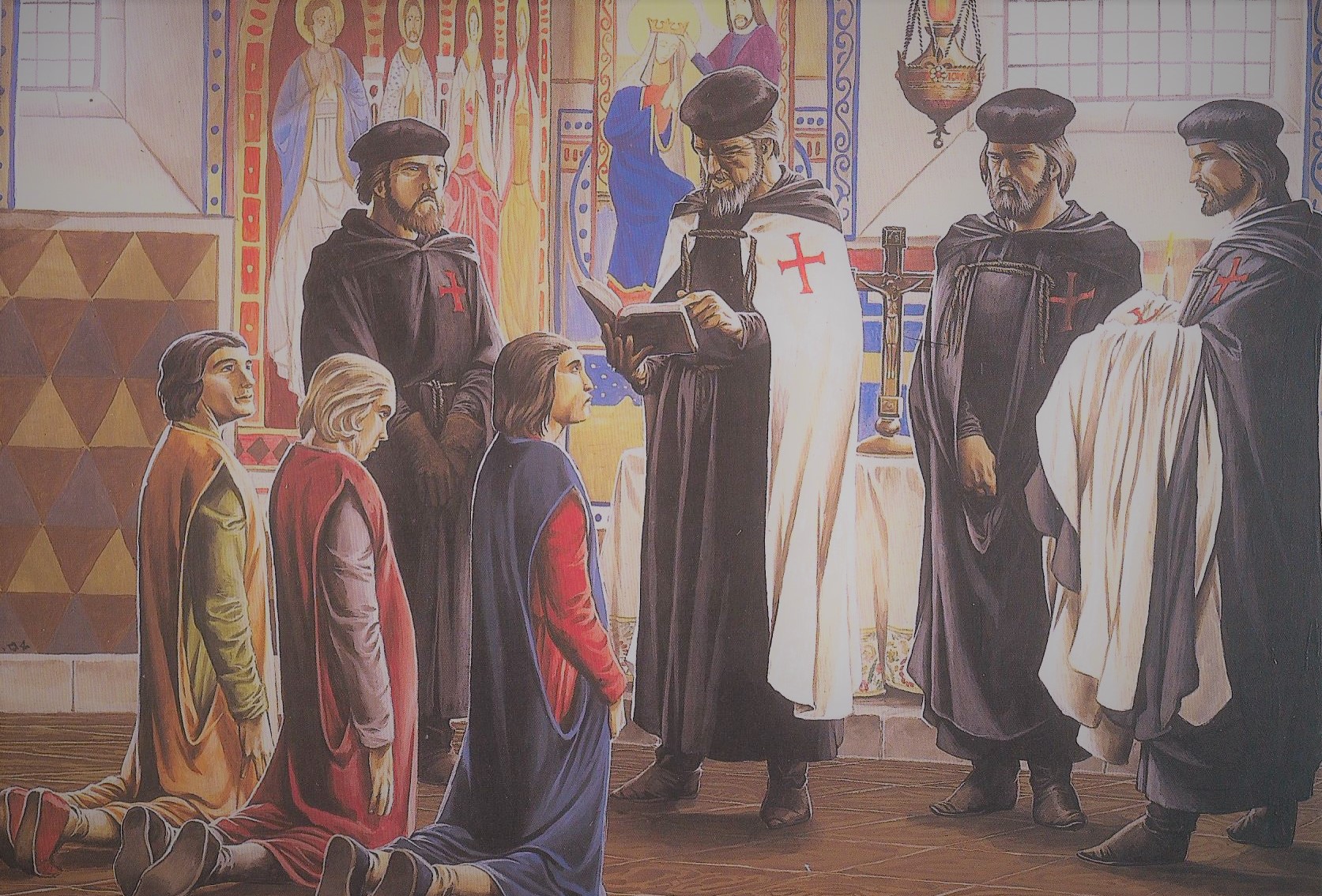 Se dopo l’ennesima strigliata non aveva ancora cambiato idea, il postulante veniva allontanato in preghiera, mentre il Capitolo esaminava il suo caso. Se l’esame aveva esito positivo, lo si richiamava e (di nuovo!) gli venivano ricordati gli obblighi dell’Ordine, le privazioni e le pene in cui sarebbe caduto nel caso avesse cercato di sottrarsi ad essi. Ricevuta (l’ennesima) risposta affermativa, il novello Templare giurava, in nome di Dio e della Vergine Maria, di obbedire al Gran Maestro, vivere in castità e povertà, di adottare e difendere le tradizioni dell’ordine, oltre a quella di difendere (e, più tardi, riconquistare) Gerusalemme. A questo punto il cappellano pronunciava una preghiera e il Commendatario dava al nuovo confratello il bacio della pace.