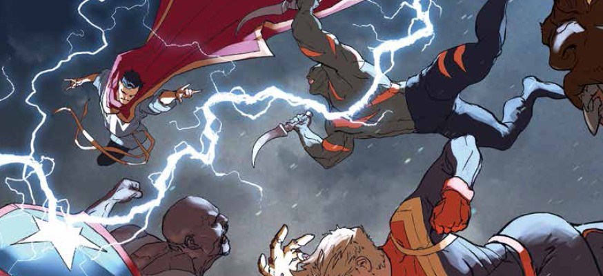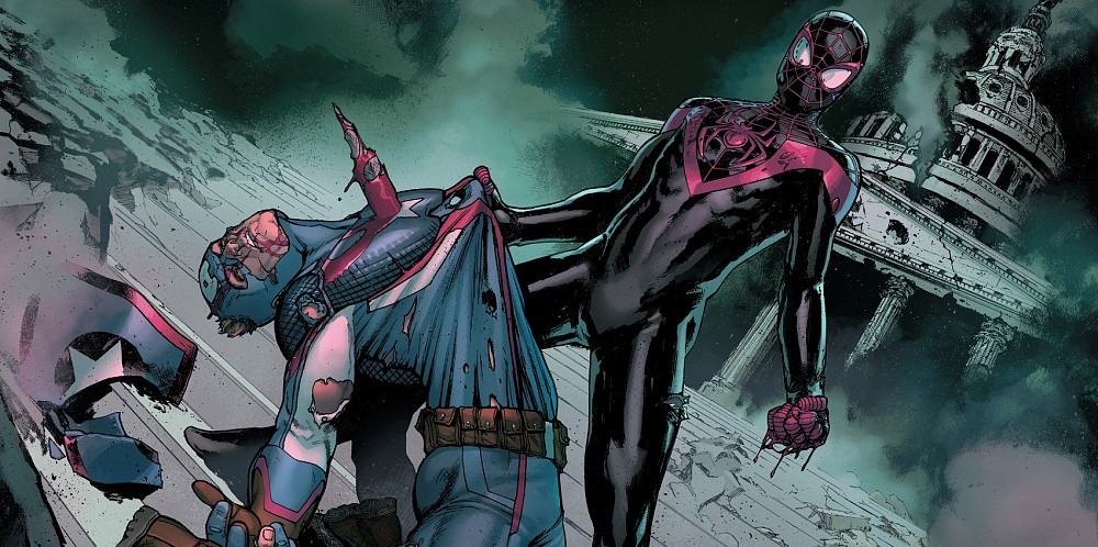 E infatti in questo quinto numero, l’episodio che vede esplodere la lotta, non succede comunque nulla di che. Qualche scontro qui, qualche scontro lì (anche divertenti, se decontestualizzati) e un cliffhanger finale che ritorna ancora una volta al tema dei poteri del nuovo inumano Ulysses. Una nuova, oscura visione che vede (se non avete ancora letto l’episodio è un piccolo spoiler, ma si tratta pur sempre di solo “futuro possibile”) lo Spider Man di Miles Morales uccidere Cap. America, lo Steve Rogers che noi sappiamo essere, a causa delle manipolazioni del cubo cosmico in possesso del Teschio Rosso, un agente sotto copertura dell’Hydra. Ma questo i supereroi non lo sanno, perciò non possono che prendere la visione come un cupo presagio.