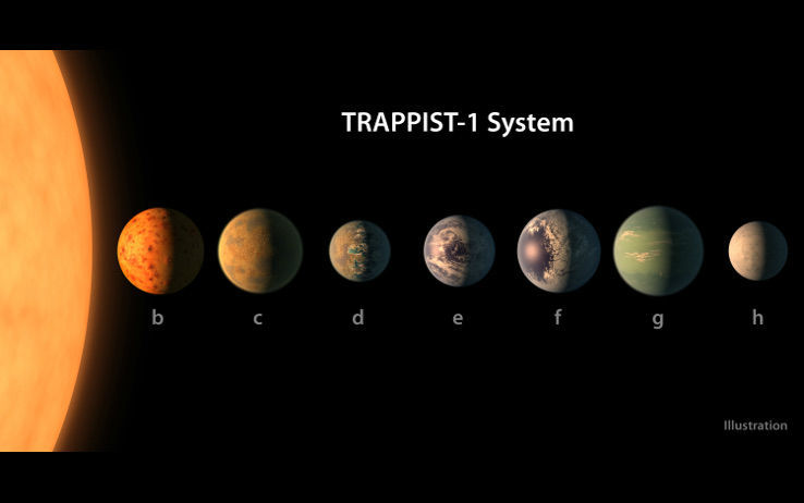Il 22 febbraio 2017 la NASA ha svelato la sua scoperta: ben sette esopianeti orbitanti intorno alla stella TRAPPIST-1, con caratteristiche simili alla Terra. Andando con ordine, TRAPPIST-1 è una stella che potremmo definire ‘fredda’ (ultra-cool dwarf, Nana ultra-fredda), nel senso che la temperatura sulla sua superficie è inferiore rispetto a quella del nostro sole e questa premessa è cruciale sotto molti aspetti. Innanzitutto questo favorirebbe la presenza di acqua in forma liquida nei pianeti che gli orbitano intorno, e non in forma gassosa, ad esempio. In base agli studi della densità dei sette corpi celesti orbitanti intorno a TRAPPIST-1, gli scienziati alla NASA, coadiuvati da squadre esterne sul resto del nostro pianeta, in uno sforzo congiunto eccezionale, sono arrivati alla conclusione che le Seven Wonders sono sette esopianeti a base rocciosa, disposti intorno alla Stella e molto vicini tra loro. Tra questi sette pianeti, i tre centrali sono stati inseriti in una zona detta “abitabile”, dove la distanza dal Sole, la temperatura stimata e l’esposizione creano le condizioni teoriche per supportare un’atmosfera vivibile (per noi) e gettano le basi per la vita come la conosciamo.