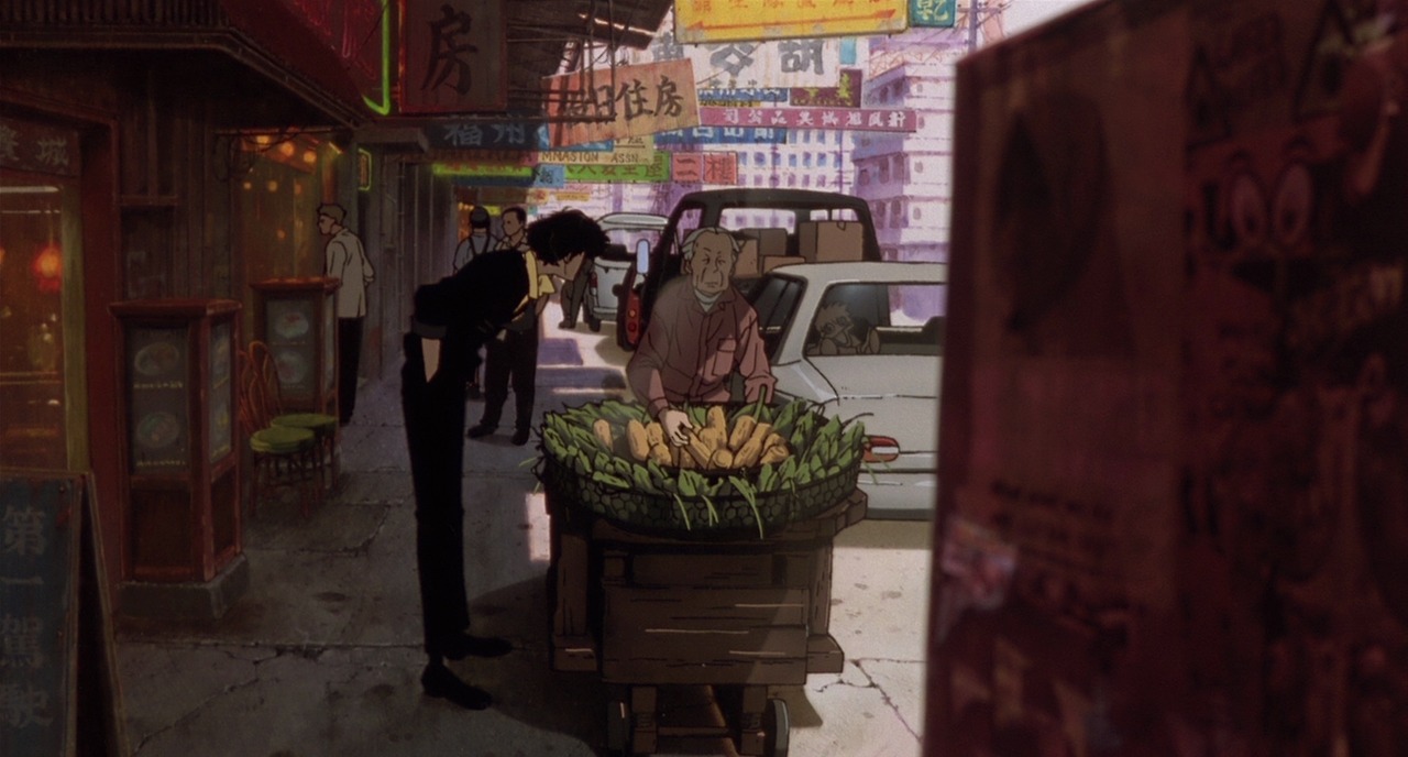 ozccowboybebopthemoviekuWatanabe e lo Studio Sunrise hanno beneficiato di un budget molto più cospicuo rispetto alla serie animata, e si vede: le animazioni sono così ben fatte che sono davvero goduria per gli occhi, raggiungendo l’apice nelle scene di combattimento: lì davvero tutto viene portato ad un livello superiore, mantenendo però sempre il “marchio di fabbrica” caratteristico della serie: colori vividi, character design longilineo, fondali studiati e complessi che riprendono diversi stili e diverse culture, a simboleggiare il “melting pot” galattico presente in quegli anni frenetici.