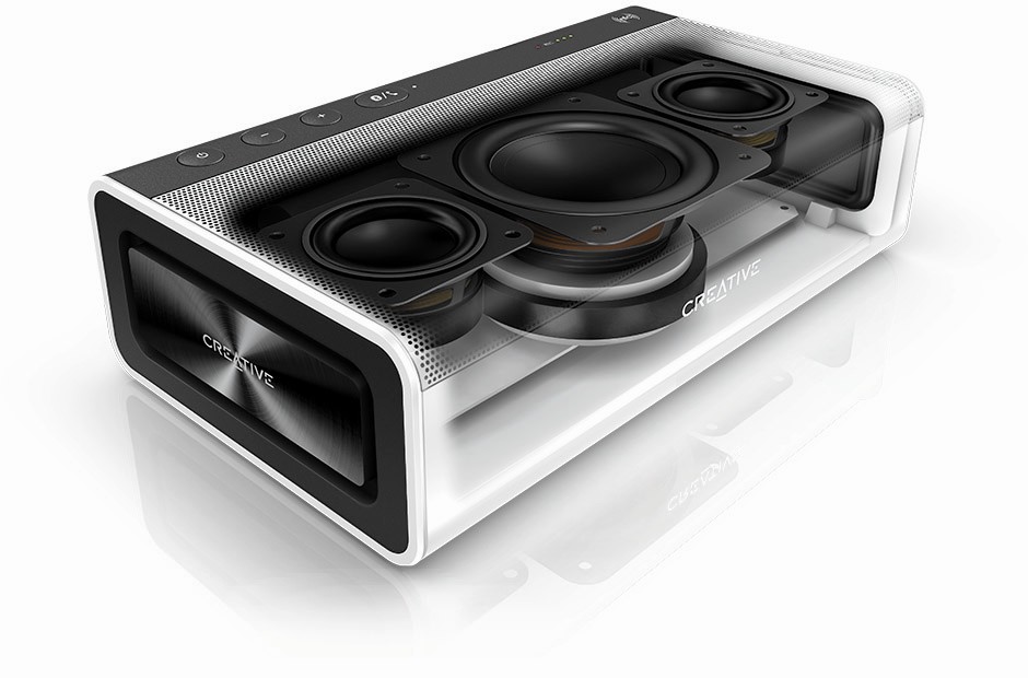 Tornando alle mere performance acustiche, come si comporta Roar 2 rispetto al suo blasonato predecessore? Il punto è che la riduzione di peso, così come la riorganizzazione dello spazio interno non hanno influito minimamente sulle performance acustiche del prodotto. Creative ha infatti optato per una nuova disposizione dei due driver da 1.5 pollici  che non più orientati verso l’alto sono ora disposti in linea con la il basso frontale. Il risultato è quello di un suono unidirezionale che tuttavia non è un problema dato l’utilizzo del Roar 2 ed il suo caratteristico design che lo porta quasi di default ad essere direzionato con il fronte in avanti, o comunque in alto (il dispositivo può essere messo supino) favorendo comunque una più che eccellente diffusione acustica. Questo perché le Roar integrano un sistema di riproduzione acustica a 5 driver che, detta in soldoni, bilancia in modo professionale l’intero spettro acustico, senza dimenticare quello che è un aspetto che sovente si perde in questi prodotti, ossia la nitidezza degli alti. Ciò è possibile grazie all’uso di un doppio sistema di amplificazione, uno dedicato ai suoni bassi e medi, e l’altro per l’appunto utilizzato squisitamente dagli alti cosicché il suono è sempre bilanciato e pulito.