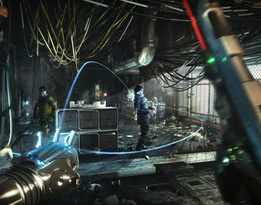 Passiamo dunque ad uno degli elementi più distintivi di Deus Ex: i potenziamenti. Che siano nano macchine o semplici protesi, i potenziamenti permettono alla serie di differenziarsi dagli altri FPS persino prendendo in esame unicamente le sezioni di shooting; in quest’ultimo capitolo, viene promesso un focus maggiore sulla componente action, migliorata e resa all’altezza di quella stealth. Assisteremo dunque alla reintroduzione di componenti tipiche dello scorso capitolo, come gli assassinii con “filmato” in terza persona, le uccisioni dall’alto, lo sfondamento di pareti ed altre abilità permesse dalle componenti biomeccaniche del protagonista. Oltre al ritorno di abilità ereditate dal prequel, Mankind Divided si sbizzarrisce però in fatto di varietà degli innesti. Ce ne vengono mostrati alcuni: come la Nano Blade, versione espandibile ed espellibile dell’iconica lama “da braccio” di Jensen, che è ora possibile lanciare a tutta velocità contro un nemico (uccidendolo) o contro un muro (in tal caso, esploderà dopo pochi istanti, mettendo fuori gioco i nemici nelle circostanze). Oppure, i Dardi Tesla, che ci consentiranno di espellere dalla mano un impulso elettromagnetico non letale capace di stordire fino a quattro nemici alla volta, similmente alla pistola da braccio P.E.P.S., in grado di stordire gruppi di nemici con proiettili al plasma. Particolarmente interessante è inoltre la modalità Focus, una sorta di bullet time che consente al giocatore di rallentare il tempo (velocizzando quindi Adam dal punto di vista dei nemici). Jensen viene inoltre reso più libero e dinamico dall’Icarus Dash, una sorta di rapidissima spinta/salto tale da far raggiungere con facilità posizioni sopraelevate od irraggiungibili. I limiti fisici imposti dalle distanze materiali sembrano sempre più ininfluenti, considerata anche l’innovativa possibilità di eseguire manovre di hacking in remoto che ci permetteranno di controllare robot, telecamere ed elementi ambientali (come piattaforme mobili e simili). Restando sull’hacking, la versione 2.0 presentata in Mankind Divided promette nuovi software utilizzabili, muove trappole, nuove sfide e tre/quattro diversi tipi di interazione con i singoli nodi della rete da hackerare. Quello che però spicca tra tutti, è forse il Titan Shield: già visto alla fine del trailer d’annuncio (reputato da molti – a torto – come un semplice pretesto tamarro per concludere il video), consiste in uno scudo capace di ricoprire interamente Jensen; durante l’attivazione ricorda visivamente l’abilità mutaforma della Mystica (X-men) cinefumettistica, solo con un aspetto poligonale e nero a sostituire le scaglie blu della mutante. Nel concreto, permette di tramutare Adam in un “carroarmato umano”, garantendogli l’immunità dai proiettili nemici e permettendogli dunque di affrontare testa a testa l’artiglieria pesante.