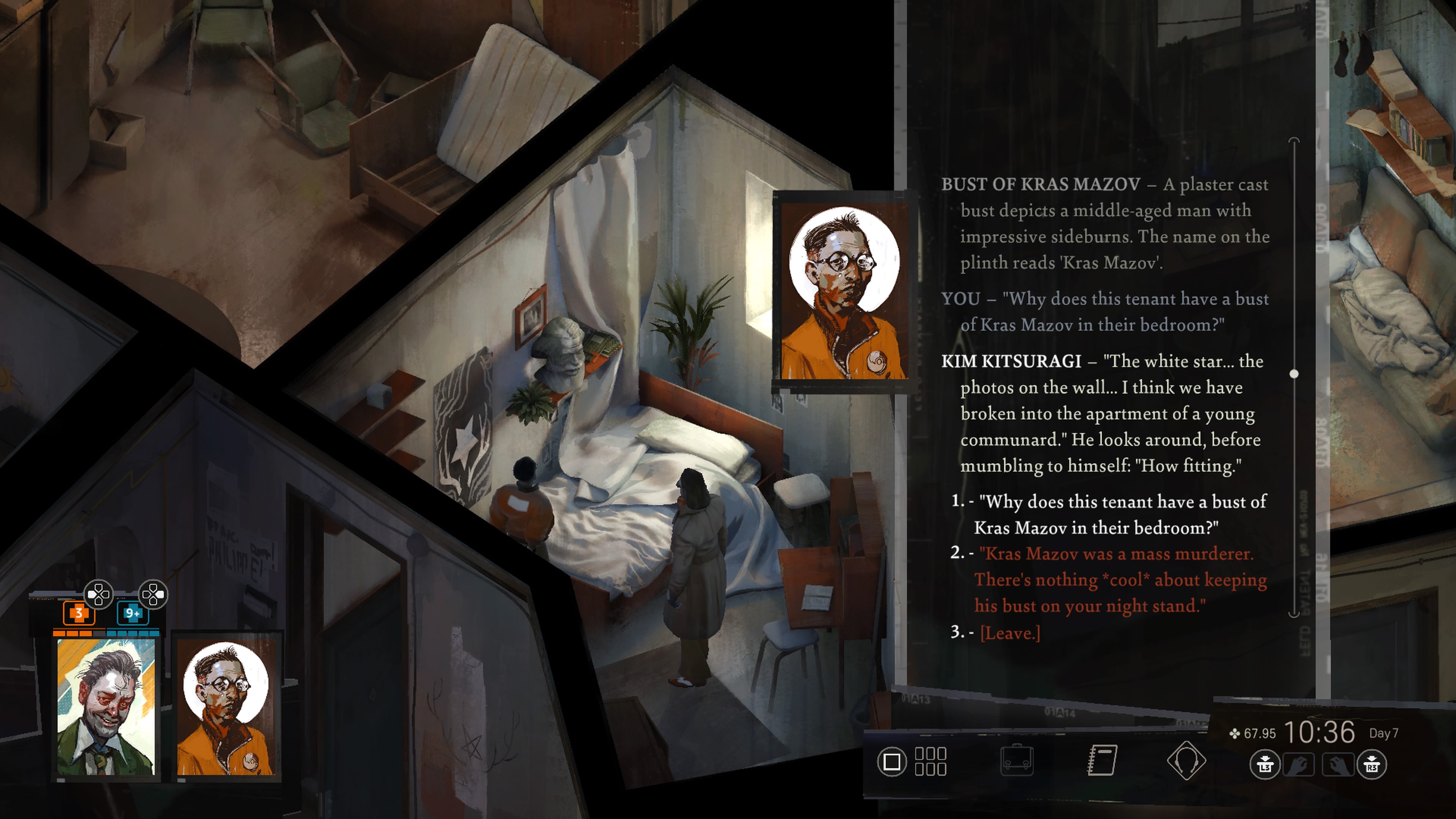 Tolto il dente avvelenato, è giunto il momento di soffermarsi sul perché sia un bene che un’opera come Disco Elysium – The Final Cut sia disponibile su console, e quindi a un pubblico ancora più vasto. Difficile trovare un punto preciso da dove iniziare, data la profonda sinergia che regola i pochi ma funzionali elementi di gioco. Tuttavia uno degli aspetti in cui Disco Esylium si rivela un portento è il grado di empatia che riesce a generare nei confronti del protagonista.