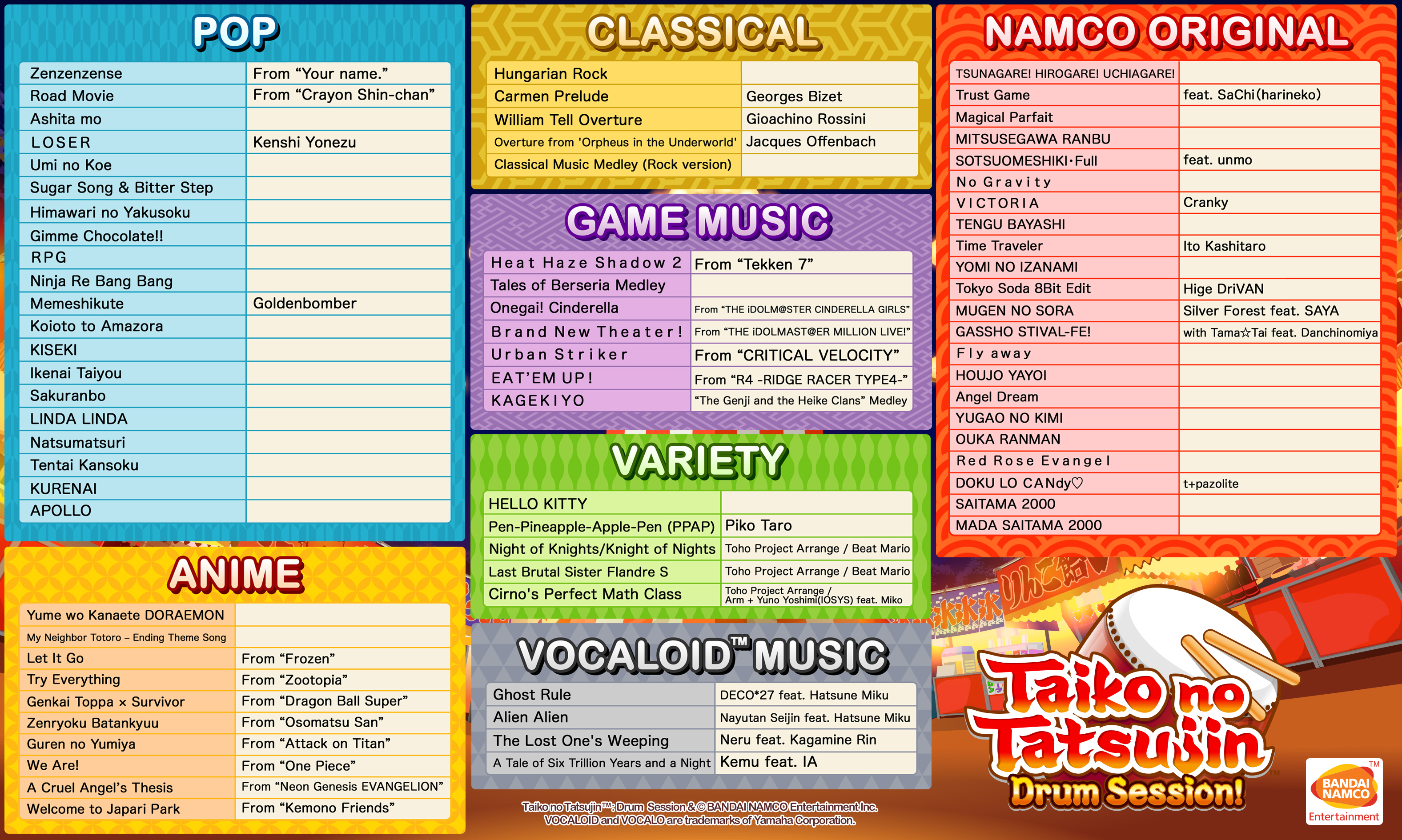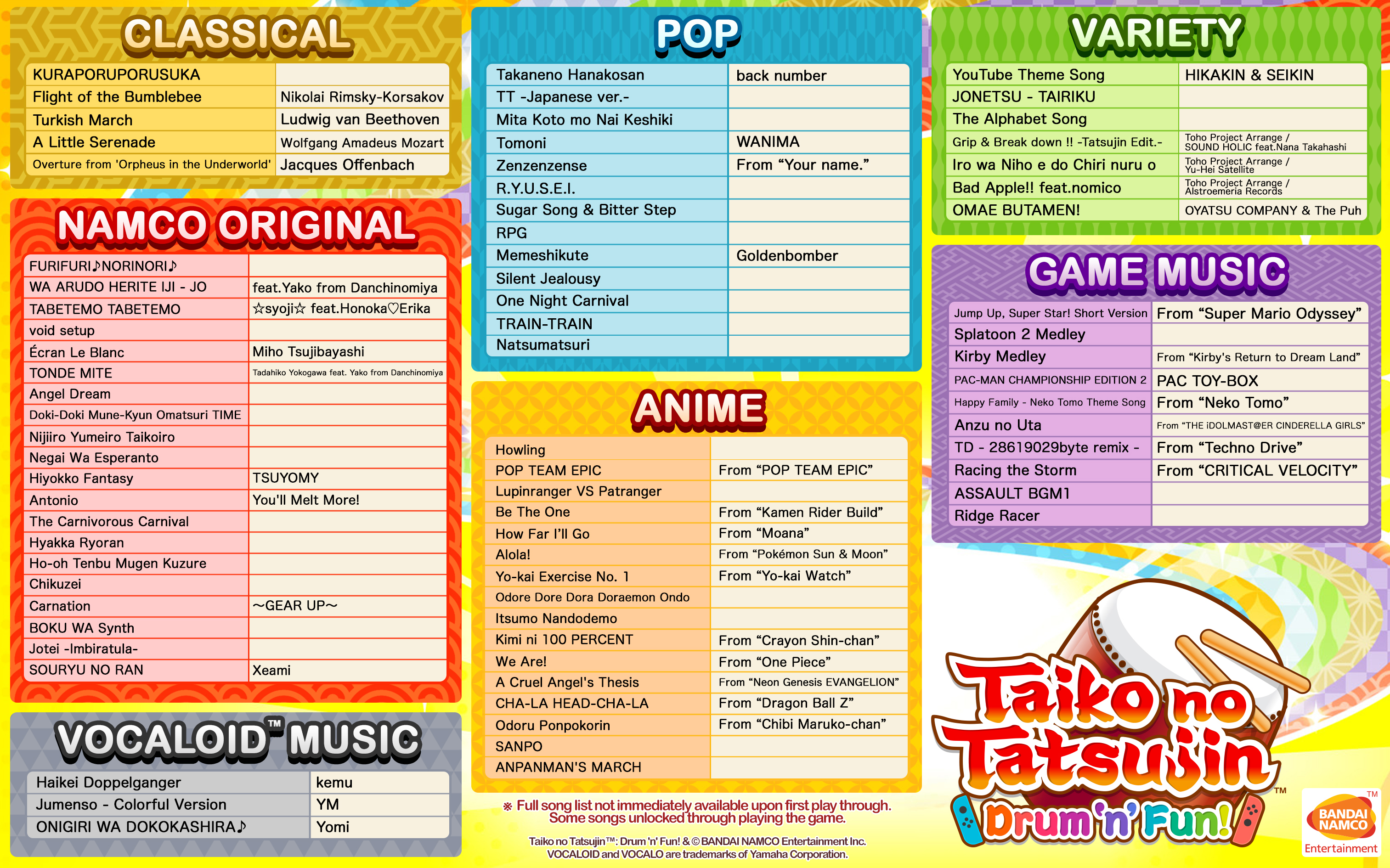 Tutte le canzoni della versione originale giapponese di ogni gioco saranno presenti nella versione europea nel formato originale giapponese, per replicare al meglio l’esperienza della sala giochi.