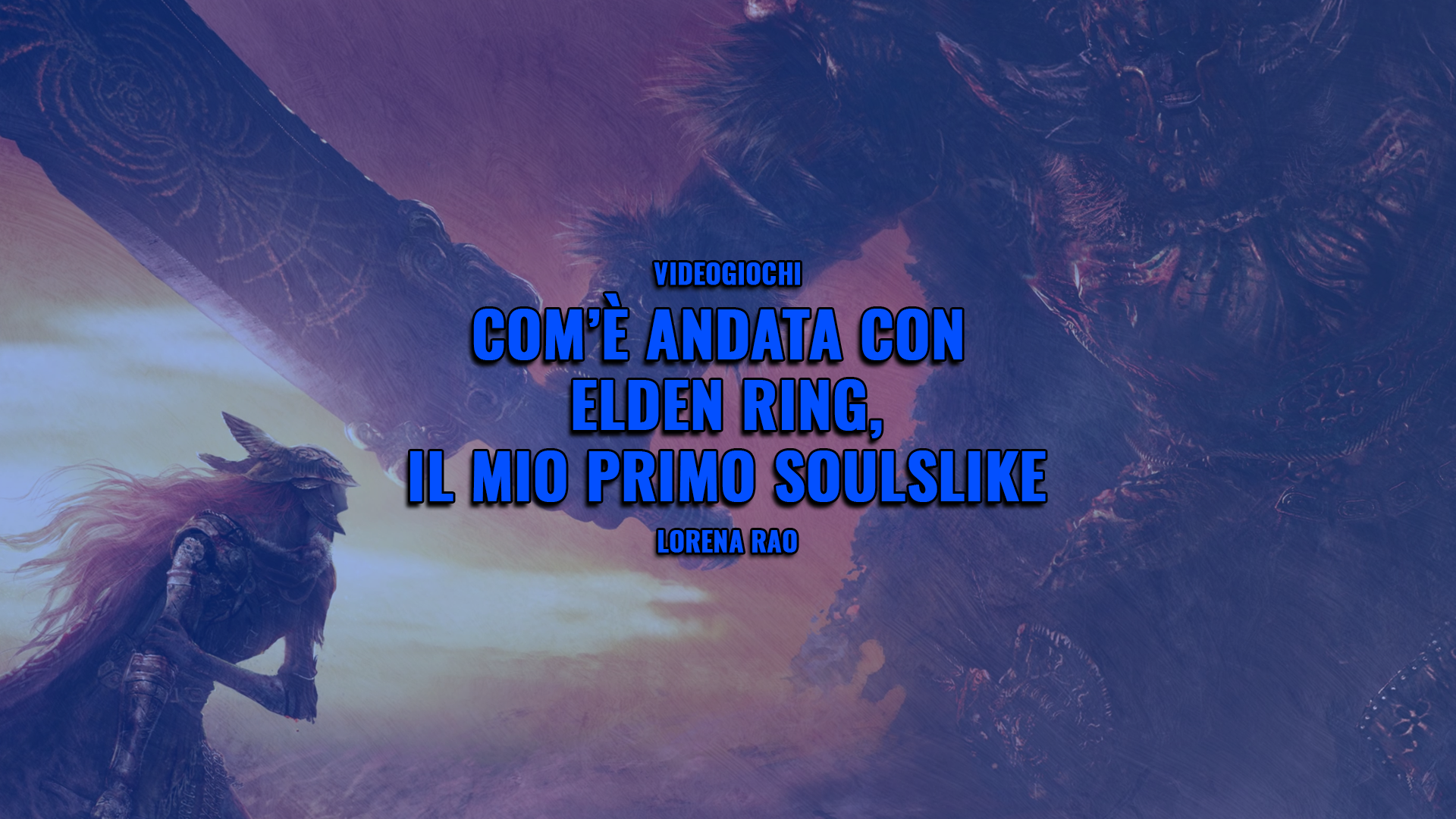 lden Ring è il mio primo soulslike. L’unico titolo giocato prima, accostabile al genere per determinate meccaniche, è Hollow Knight. Una bellissima parentesi che però non ha cambiato il mio rapporto con la produzione FromSoftware, da cui per anni mi sono tenuta lontana perché “troppo difficile”. Avrei saltato anche Elden Ring a piè pari, conscia che sarei stata esclusa dal dibattito videoludico esploso il giorno dell’uscita e che tutt’ora continua floridamente. Eppure eccomi qui, a raccontare com’è andata con l’ultimo titolo diretto da Hidetaka Miyazaki a chi come me lo ha sempre temuto. Merito di un codice review arrivato in redazione al day-one. Un’occasione anche per rendere reale un inside joke per chi segue il podcast Gaming Wildlife. Per chi desidera un’analisi più completa e meno soggettiva del gioco, vi è l’articolo di Luca Marinelli Brambilla.