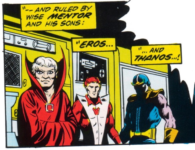 Figlio di Mentore e Sui-San della stirpe degli Eterni, quello che tutti conosciamo come Thanos nasce su Titano col nome di Dione. Alla nascita dimostra le caratteristiche della Sindrome Deviante, ovvero una rara mutazione genetica che lo avvicina agli ancestrali nemici della sua stirpe. Questo ne farà un paria della società degli Eterni, rendendolo agli occhi di molti come un’aberrazione e mettendolo ai margini della società.