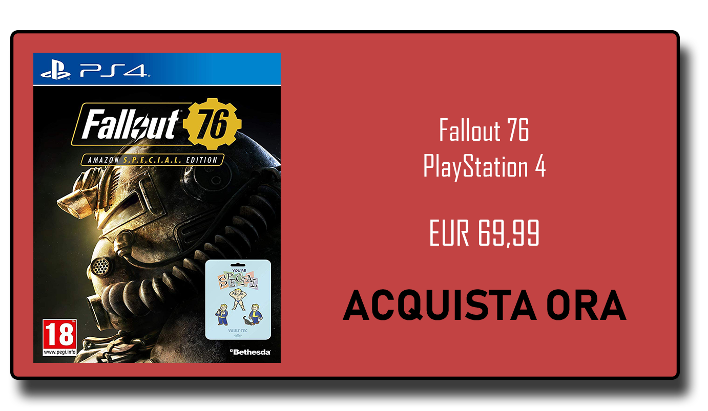 Fallout 76, infatti, è un gioco fortemente improntato sulla componente multigiocatore e, con ogni probabilità, avvicinarsi al titolo senza un team o comunque una squadra bene organizzata può risultare, alla lunga, un svantaggio sensibile.