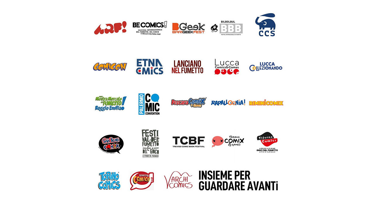 Questo appello è sottoscritto da ARF! Festival (Roma), Be Comics! (Padova), B-Geek (Bari), BilBOlBul (Bologna), Cesena Comics & Stories, COMICON (Napoli), Etna Comics (Catania), Lanciano nel Fumetto, Le Strade del Paesaggio (Cosenza), Lucca Comics & Games, Lucca Collezionando, Mostra Mercato del Fumetto ANAFI (Reggio Emilia), Palermo Comic Convention, Pescara Comix & Games, Rapalloonia! Mostra Internazionale dei Cartoonists (Rapallo), Riminicomix, San Beach Comix (San Benedetto del Tronto), TCBF Treviso Comic Book Festival, Teramo Comix, Tiferno Comics (Città di Castello), Torino Comics, Varchi Comics (Montevarchi), Venezia Comics, 23 manifestazioni di respiro nazionale e internazionale, con un bagaglio storico importante, ben radicate nei propri territori, in dialogo con amministrazioni locali, nazionali ed europee, che ogni anno offrono una pluralità di eventi capaci di attirare un pubblico numeroso ed eterogeneo, che va oltre il milione di presenze con un indotto economico e una ricaduta sui territori intorno ai trecento milioni di euro.