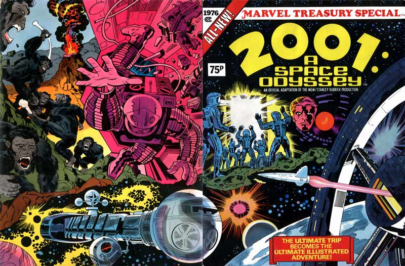 Kirby e la Marvel, come sempre, sono capaci di osare e hanno in mente di adattare con un albo il capolavoro di Kubrick, per poi continuarne la linea narrativa con una serie composta da diversi numeri. Ecco quindi prendere vita un’opera scritta e disegnata da Jack Kirby, inchiostrata da Frank Giacoia, con la supervisione di Archie Goodwin e Marv Wolfman. Il formato è atipico: viene adattato lo stile di un tabloid, grande il triplo rispetto ad un classico albo griffato Marvel.