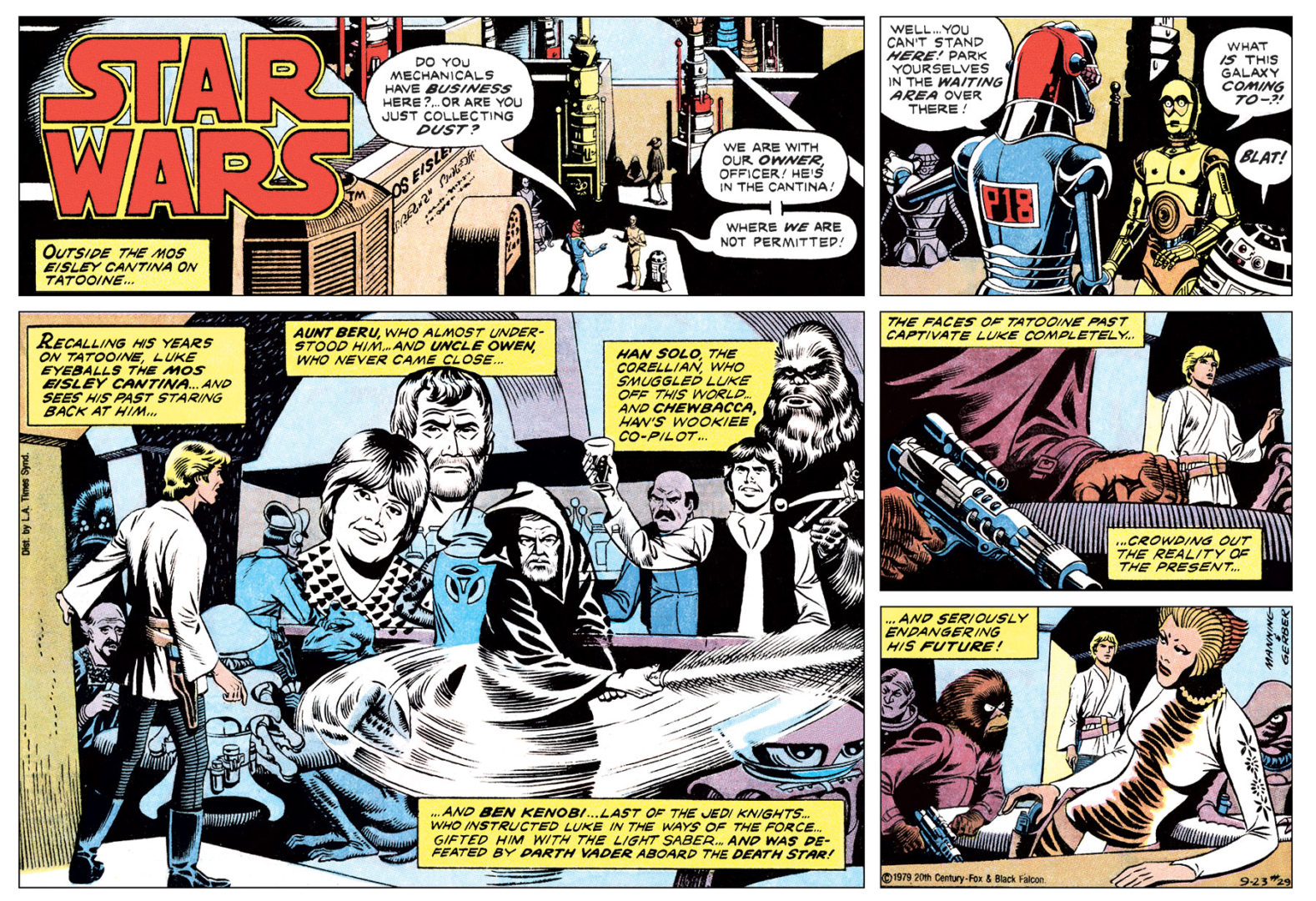 I sei fumetti legati al primo film, scritti da Roy Thomas e disegnati da Howard Chaykin, furono un successo editoriale clamoroso. Le vendite superarono abbondantemente le centomila copie e vennero dunque subito rinegoziati nuovi accordi per ulteriori pubblicazioni. Il 12 aprile del 1977, un mese prima dell’ uscita del film Guerre Stellari aka Una nuova speranza, che uscì in 42 sale statunitense il 25 maggio 1977, la Marvel mise in commercio il primo albo di una serie a fumetti denominata Star Wars. I primi dieci numeri videro nuovamente al timone Roy Thomas e Howard Chaykin, che abbandonarono ben presto il progetto per le intromissioni costanti della Lucas nel loro lavoro. Nel maggio del 1978 i due furono sostituiti dallo sceneggiatore Archie Goodwin e dall’illustratore Carmine Infantino.