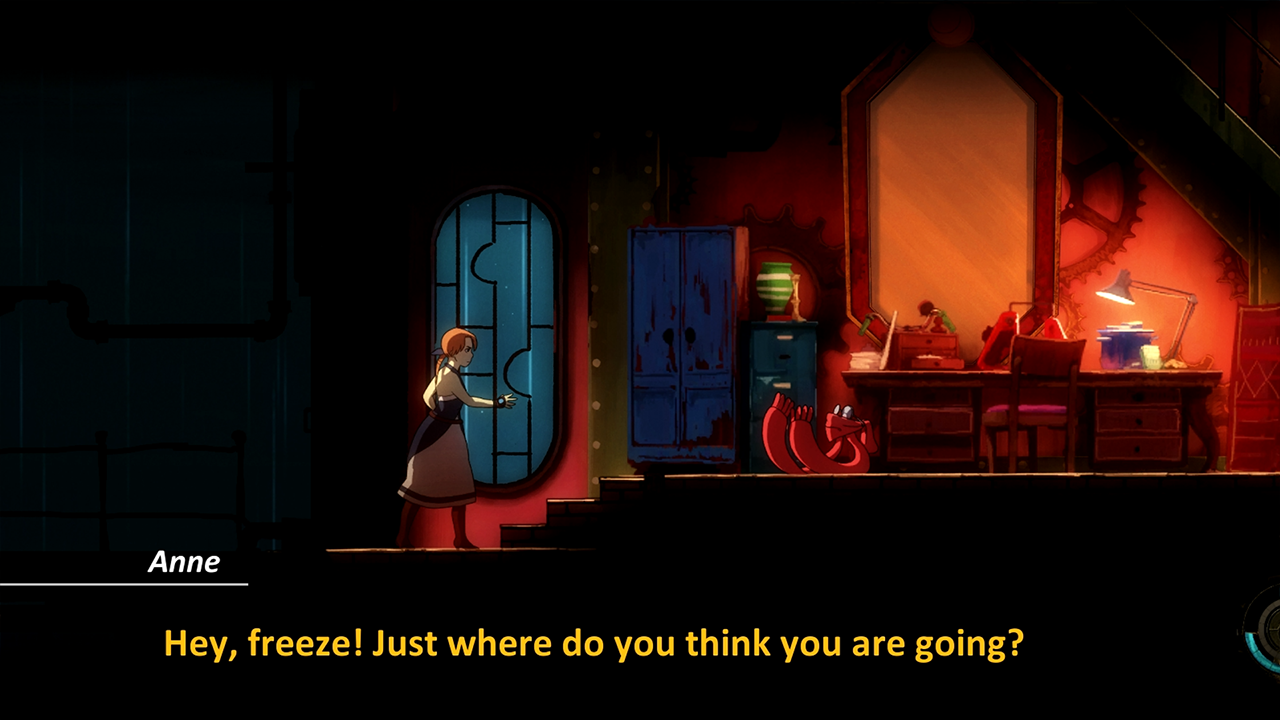 Lo svolgimento del gioco si suddivide in momenti di platforming, puzzle ambientali e risoluzione di enigmi, il tutto racchiuso in una cornice in stile avventura grafica. Fin da subito veniamo catapultati nella storia, ritrovandoci dopo nemmeno cinque minuti di gioco a dover prendere una decisione che inciderà sullo svolgimento degli eventi futuri. La capacità decisionale di cui saremo dotati non si baserà esclusivamente sulle opzioni di dialogo ma soprattutto sul potere che abbiamo su tutti i forgotlings, Anne infatti è dotata dell’Arca che le permette di “disinstallare” gli oggetti succhiandogli via la vita. L’Arca è la nostra unica fonte di potere, che ci permetterà non solo di uccidere i forgotlings ma anche di muovere meccanismi e di utilizzare un paio di ali per raggiungere zone sopraelevate. Il potere che abbiamo è grande ma limitato, sta di fatto che una simile potenza avrà un riscontro significativo sia nelle indagini, che sul rapporto con i personaggi che sull’evoluzione del personaggio di Anne.