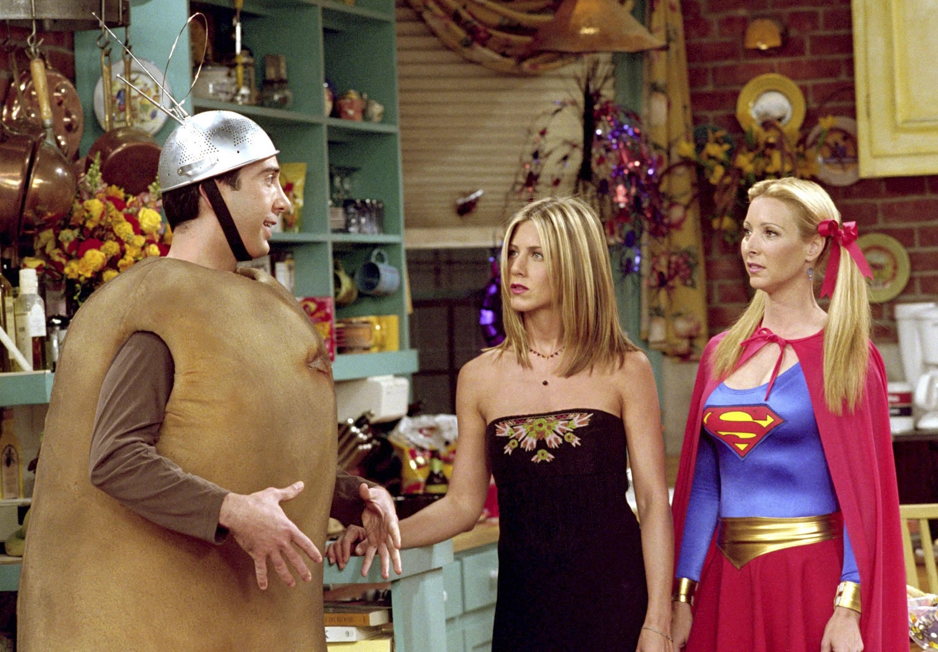 Il costume faceva parte di un gioco di parole intraducibile in italiano, ma è senz’altro uno dei momenti più iconici della serie, anche perché nell’episodio in questione lo vediamo anche fare a braccio di ferro contro Chandler vestito da coniglio rosa…
