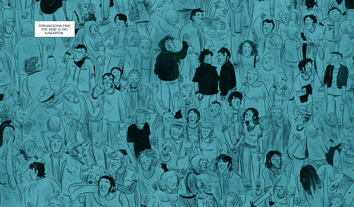 Dalle parole dello stesso fondatore di questa piccola oasi musicale, Waldek Czapski, il giovane Marcin Podolec imbastisce un racconto struggente e doloroso, confermandosi una delle stelle nascenti del fumetto polacco, firmando un diario di seconda mano, per così dire, dove il flusso di coscienza tipico di chi racconta a voce la propria vita è punteggiato da tante trovate grafiche e voli pindarici eclettici.