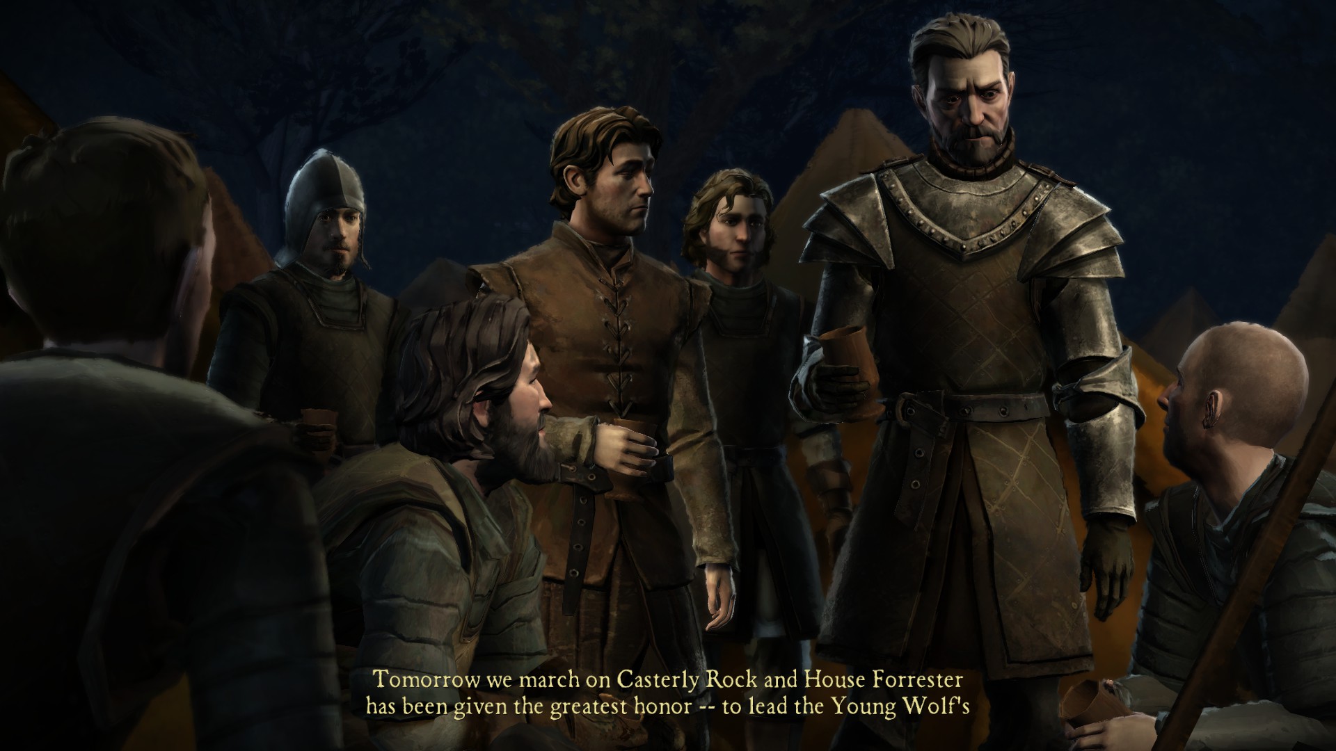 Come aveva già fatto per The Walking Dead, TellTale opta quindi verso una scelta concettuale abbastanza scontata, ma non per questo sgradevole. Consci di non poter che marginalmente sfiorare dei personaggi che DEVONO stare al loro posto (ossia la consolidata traccia della serie tv), gli sviluppatori ci metteranno nei panni di personaggi marginali che, per dovere di cronaca, sono comunque presenti (seppur solo brevemente citati) nell’opera originale di Martin. La Casa Forrester, infatti, è ben nota per essere una delle Case devote agli Stark e, in quanto tale, si troverà ovviamente nel mezzo del caos nei difficili anni della lotta per il trono specialmente dopo gli arci noti fatti accaduti nel corso delle nozze di Robb Stark.