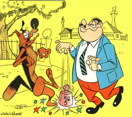 Finire nel Dictionnaire Mondiale de Bandes Dessinées francese, un’opera quasi sacra per chi si occupa di arti grafiche, è un onore che pochi vantano. E tra quei pochi c’è (c’era) Giorgio Rebuffi, prolifico e geniale autore che ha inventato il fumetto italiano a cominciare dagli anni ‘50. A soli ventun’anni, la casa editrice Alpe lo scopre come autore esordiente e lo tiene tra le sue fila tanto da affidargli il rinnovamento della serie Cucciolo e Beppe, coppia di animali antropomorfi inscindibili come Bud Spencer e Terence Hill o Gianni e Pinotto. Questo è solo l’inizio: dalla sconvolgente e straripante mente creativa dell’autore milanese scaturiscono decine e decine di idee, personaggi sopra le righe, scenette umoristiche ormai storiche. Con il suo apporto, l’universo narrativo di Cucciolo e Beppe diviene mastodontico, di altissima qualità e amato da tutti i lettori. E questo è solo l’inizio… La sua personale visione del fumetto come ‘essenziale e senza fronzoli’, dove ciò che conta è il ritmo, lo rende ambasciatore perfetto del fumetto umoristico italiano tra gli anni ‘50 e ‘60. Un connubio tra nuvoletta e disegno fatto di cadenze e tempi narrativi pressoché perfetti lo portano nell’olimpo della carta stampata del suo tempo, quando introduce uno dei suoi personaggi più famosi e sopra le righe. Stiamo parlando di Pugaciòff, il lupo russo, direttamente dalla steppaff sovietica, anarcoide e perennemente affamato, di guardia alla casa di Cucciolo e Beppe. Il suo modo di esprimersi in un cirillico finto e maccheronico è esilarante a una prima lettura, ma diviene quasi catartico se ci si sofferma sul periodo storico in cui il personaggio ha preso vita: stava iniziando la Guerra Fredda tra Occidente e Russia, e il miglior modo per esorcizzare una paura sempre più galoppante è schernirla e annientarla a suon di risate. Ma Giorgio Rebuffi non aveva ancora esaurito i suoi proiettili, ma anzi continuava a ricaricare la sua personale pistola sparavignette un caricatore dopo l’altro, senza tregua. Nascono decine di personaggi come Bingo Bongo, Aiace il fantasma, Torquato maiale ostinato, il gorilla Artemidoro, Fungolino e talmente tanti altri da riempire tutto il resto di questo articolo. Il vero capolavoro (senza sminuire gli altri finora citati) arriva con un personaggio inventato da Roberto Renzi, Tiramolla. Un ‘supereoe’ dai molteplici poteri e dall’aspetto filiforme, nato da un capello nero mutato per il contatto con acido solforico, gomma arabica, acido silicico, pietra pomice e dinamite, che sarebbe stato amato dai suoi lettori per oltre sessant’anni. Grazie a questo mix esplosivo, Tiramolla serpeggia tra le tavole di Cucciolo e Beppe (vera fucina di personaggi ed esperimenti) fino a trovare una sua autonomia, con una sua testata e una sua personalità assolutamente riconoscibile.