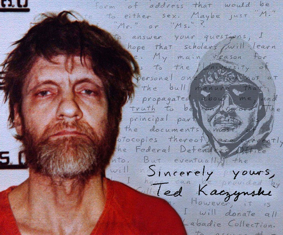 Chiudiamo con l’ultima personalità, la più travagliata, quella che più ha influito sull’esistenza degli esseri umani in generale, quella che in maniera più assurda, violenta e agghiacciante incarna l’idea di genio e follia: Theodor Kaczynski. Figlio di emigrati polacchi, nato a Chicago, Theodor è arrivato in cima al suo percorso di studi stupendo per la sua intelligenza e per la sua genialità nella risoluzioni di problemi matematici. Il suo professore e mentore disse di lui che ‘dire che è intelligente è troppo poco.’ A 25 anni, Kaczynski era già professore associato ad Harvard e si profilava davanti a lui una carriera folgorante.