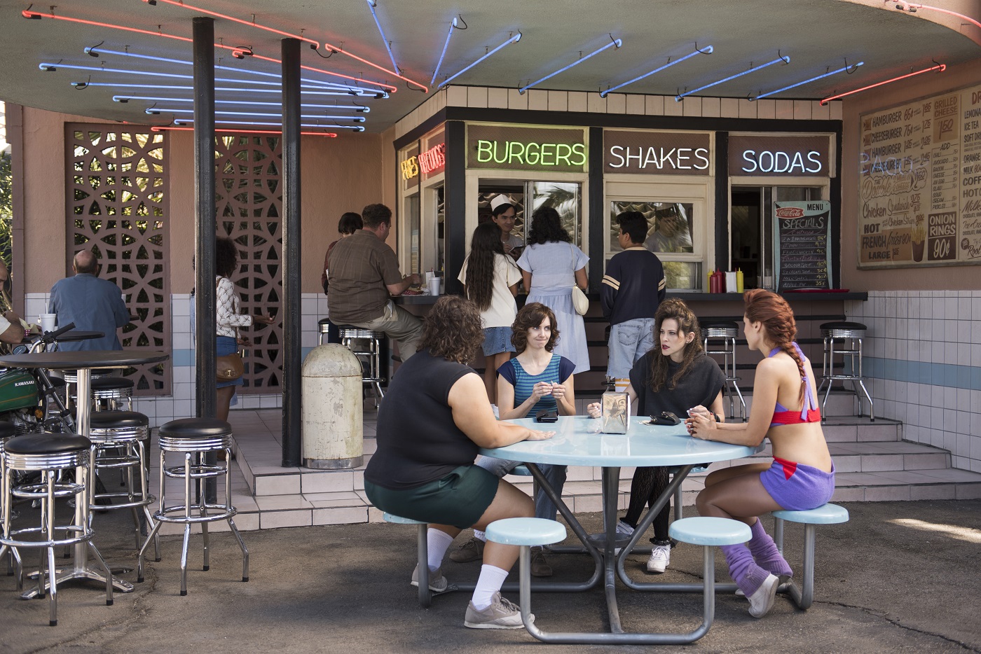 Oltre a lavorare con 12 disadattate di Hollywood, Ruth deve anche affrontare Debbie Eagan (Betty Gilpin), un’ex attrice di soap-opera che ha lasciato il lavoro per avere un bambino, per poi scoprire che la sua vita non era affatto perfetta come sembrava. E al timone c’è Sam Sylvia (Marc Maron), un regista di B-movie senza futuro, che ora guida un gruppo di donne nel mondo del wrestling.