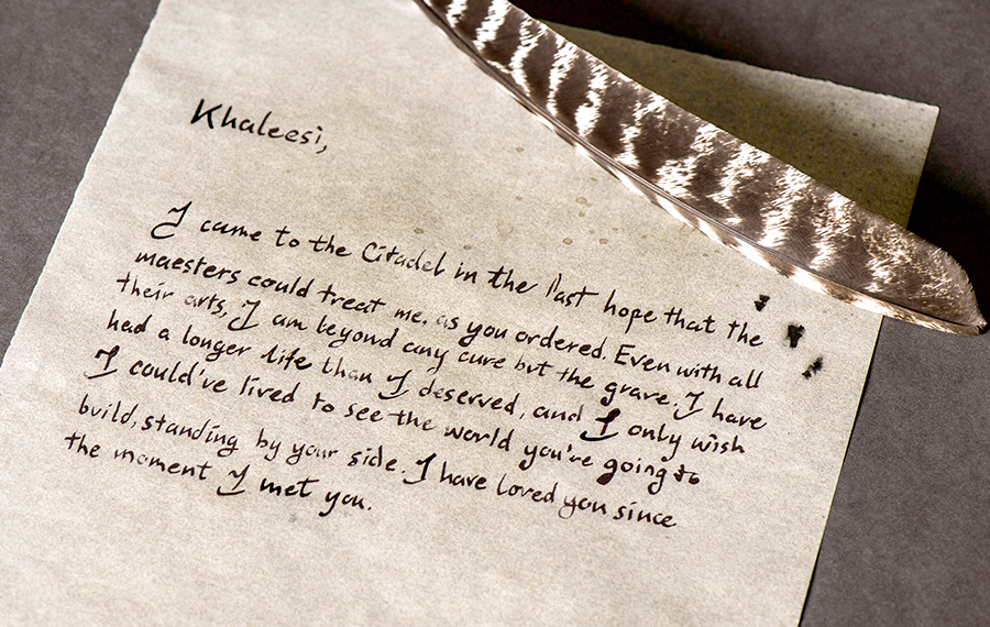 Il primario dell’ospizio non ha dubbi: quei brutti sfoghi sono un effetto collaterale del vaccino contro i calcoli renali, e gli restano pochi mesi di vita prima di venire rapito dai Marvel Studios per il terzo reboot brutto della famiglia di supereroi più cinematograficamente sfigata dell’universo. Fortunatamente l’eutanasia è legale a Westeros, sempre che tu abbia il coraggio di piantarti una spada nel cuore (come cantava Little Tony). Ma siccome ne uccide più la penna della spada, Jorah decide, prima di fare la fine di Madama Butterfly, di scrivere una lettera alla sua amata Khaleesi. Fortuna che Sam lo interrompe: “ma non ti sembra di aver già perso abbastanza dignità per colpa di quella platinata?”