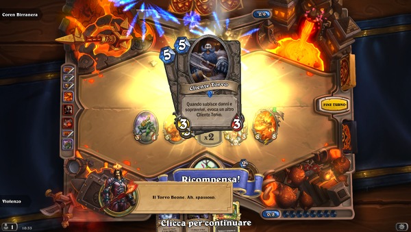Quel che ci è piaciuto del Massiccio Roccianera è sicuramente la varietà con cui Blizzard ha caratterizzato le sue sfida. Nel corso dei 17 scontri sparpagliati per le varie ale dei bastioni quel che si respira è un concentrato di stile, che cerca di caratterizzare gli scontri in modo che essi, oltre all’ovvia progressione di difficoltà (invero non sempre bilanciatissima) offrano al giocatore anche dei pretesti per 214192_1aingegnarsi. I boss, infatti, con le loro abilità uniche e con set di carte a volte terribilmente lamer, riescono sempre a tenerci concentrati, con pochi momenti negativi e tanti istanti decisamente positivi. La maestria con cui Blizzard riesce, di volta in volta, ad escogitare situazioni ludiche pur restando ancorata ad un gioco di carte è francamente lodevole e, in occasione di questa seconda avventura, lascia ormai poco spazio alla concorrenza: la struttura delle avventure di Hearthstone ha un carattere unico, ed il fatto di avere a disposizione un universo, quello di Warcraft, con così tante situazioni, eroi, e luoghi da cui poter attingere, dona al prodotto un carattere eccezionale, che fa spiccare il prodotto sulla concorrenza… e non di poco.