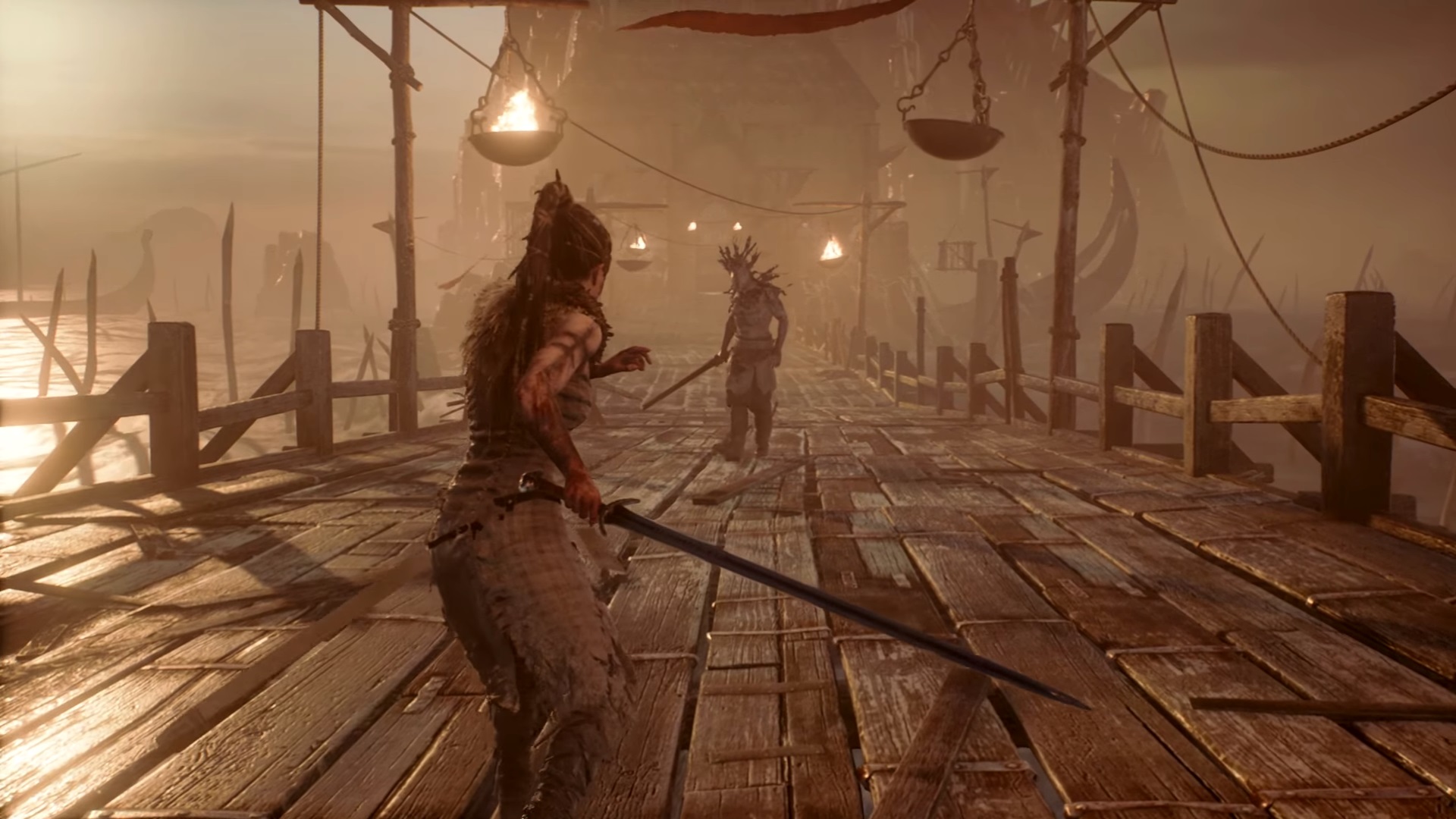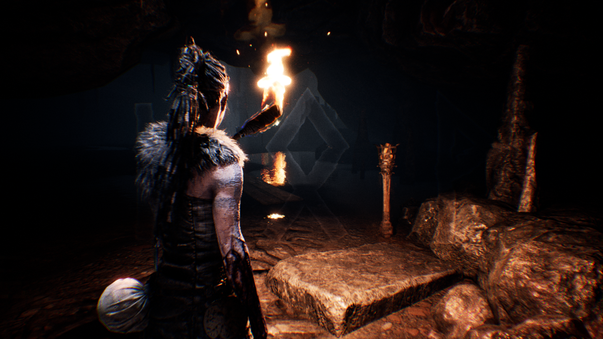 Ecco quindi che gli enigmi propongono quasi sempre variabili sullo stesso tema: porte sbarrate con dei simboli incisi che si aprono a noi solo quando troveremo nell’ambiente quelle stesse forme da inquadrare con il tasto “concentrazione”. Potrebbe trattarsi ad esempio di una “X” formata da due rami spezzati, o magari della sagoma di una freccia da scorgere tra le ombre di alcuni oggetti che si intersecano tra loro. Una dinamica surreale, quasi forzata e talvolta tediosa. Non sempre si arriva ad intuire così facilmente su cosa concentrare lo sguardo per ritrovare i simboli chiave, ma ancora una volta, è una circostanza perfettamente calata nella condizione mentale di Senua, e risulta una brillante allegoria visiva per una malattia in cui funziona effettivamente così, ove capita a chi ne è affetto di fissarsi in maniera morbosa su degli oggetti, attribuendogli un significato che non esiste.