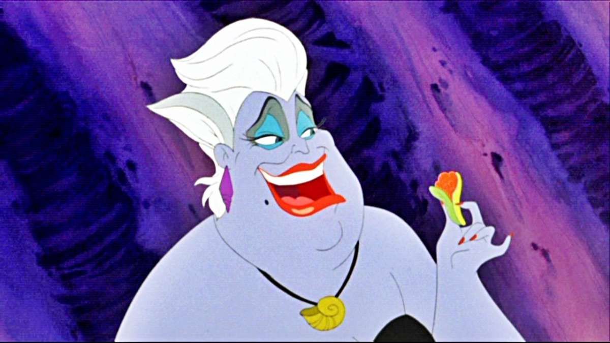 Se la protagonista è una bellissima Sirenetta, la perfetta antagonista non può che essere un’orrenda donna-polipo. Grassa, brizzolata e viola.