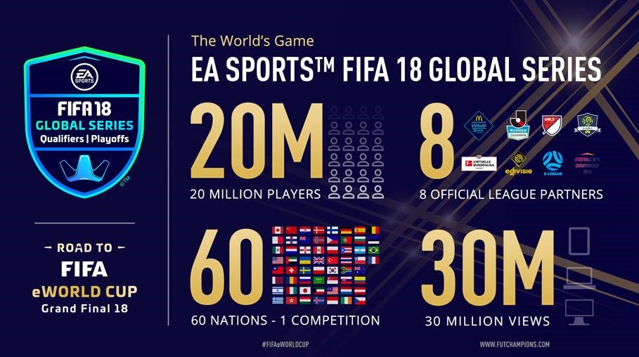 Le EA SPORTS FIFA 18 Global Series sono un passo decisivo nello sviluppo di un ecosistema competitivo unificato di EA e della Federazione. Questa competizione ha portato il videogioco sportivo più popolare al mondo ad un nuovo livello nel mondo competitivo, con più di 20 milioni di giocatori in tutto il mondo coinvolti in questa stagione della modalità competitiva e accomunati dal grande sogno di diventare Campione del Mondo.