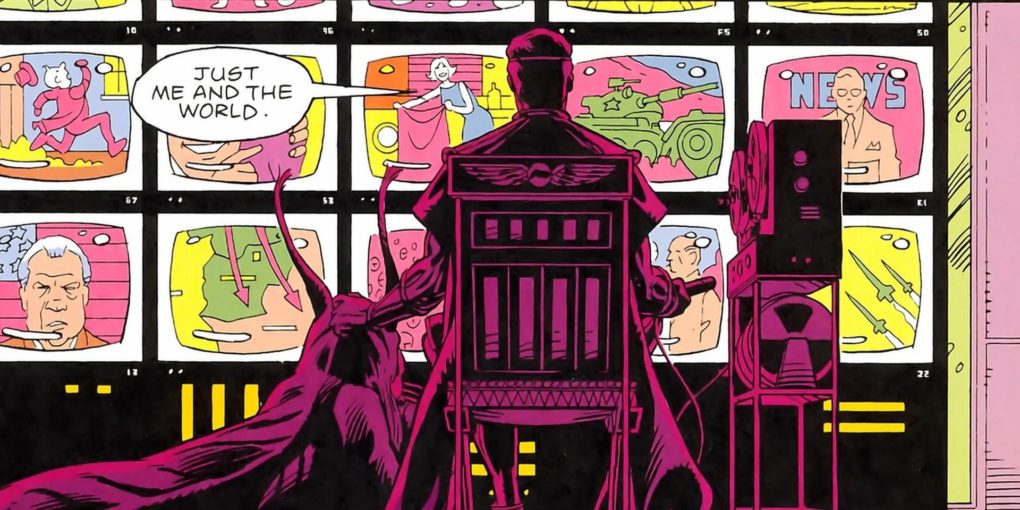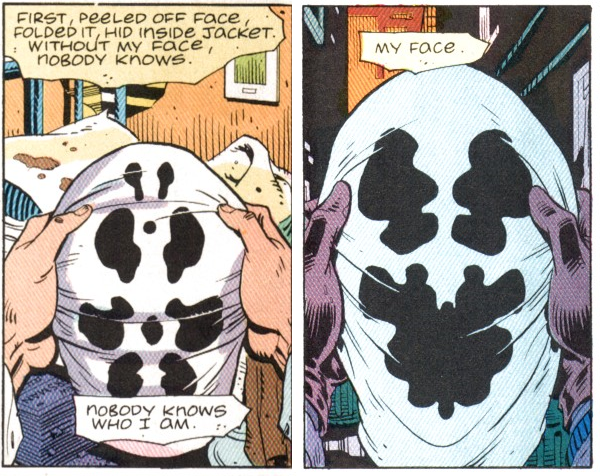 Qui Alan Moore non ha bisogno di inventarsi niente, si lascia guidare dalle naturali reazioni dei suoi protagonisti all’ambiente. Ed ecco dunque che le manie di Rorschach ci appaiono perfettamente normali, insieme al suo religioso senso di giustizia, risposta estrema ad un’epoca estrema. Come il Comico, convinto di aver capito il “grande scherzo” della vita e per questo incapace di prendere tutto sul serio.