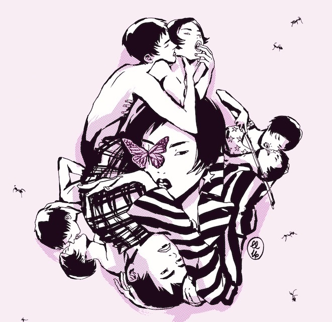 Ultimamente, attraverso le sue più recenti graphic novel (Porcelain e Heartbeat) si è specializzata in storie controcorrente che oltraggiano e sfottono le convenzioni sociali. In questa poetica va inquadrata Insecto, vicenda semplice eppure complessa di una relazione incestuosa tra un fratello e una sorella uniti da un sentimento incredibile. I primi di voi che avranno osato, stuzzicati dalla parola “incesto”, pensare ad un accostamento con la relazione che, in tal senso, è di fatto diventata la più famosa della TV, facciano subito dietrofront. L’amore che Lucas e Lea provano l’uno per l’altra ha ben poco da spartire con quello gemellare e tormentato di Jaime e Cersei Lannister. Questo è un amore onnicomprensivo, dove non esiste differenza tra l’affetto tra consanguinei, la passione carnale, l’interesse per la felicità dell’altro e la brama di passare col partner tutto il tempo. Ma è fatto anche di sensualità, coincidente con la scoperta del proprio corpo, della perversione, seguita osando e ignorando le regole della moralità e del buon costume. Non a caso, la struttura narrativa del libro rispecchia completamente questo caleidoscopico rapporto. Nella tavola, lo spazio lasciato alle parole è misero, se non asciutto: servono solo ad introdurre, a specificare, a ripetere quello che i disegni hanno già detto, dichiarato, urlato, o fatto solo intuire.