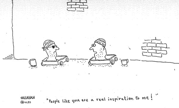 In Italia la sua arte è arrivata per vie traverse ed è più noto per la sua particolare condizione che per i meriti artistici, ma John Callahan è stato uno dei vignettisti più importanti del secolo scorso. Ha contribuito ad emancipare ulteriormente il genere della satira con il suo black humor dilagante, la sua forza espressiva e il desiderio di sfidare i canoni del politicamente corretto. Una carriera lunga e durevole nonostante le sue difficoltà fisiche, iniziata nel 1983 sulle pagine del Willamette Week e conclusasi solo con la sua morte, avvenuta nel 2010.