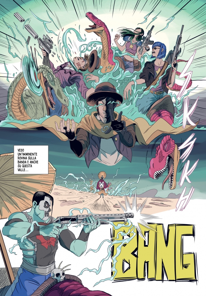 Interessante l’estetica generale di Kids with Guns che si traduce in vari tributi al genere western, fantasy e fantascientifico. Se la sceneggiatura è scollegata da una certa coerenza interna almeno la resa artistica è un ragionato manifesto personale e culturale di Capitan Artiglio a cui va un buon riconoscimento per aver sintetizzato la sua fantasia in epopea fumettistica.